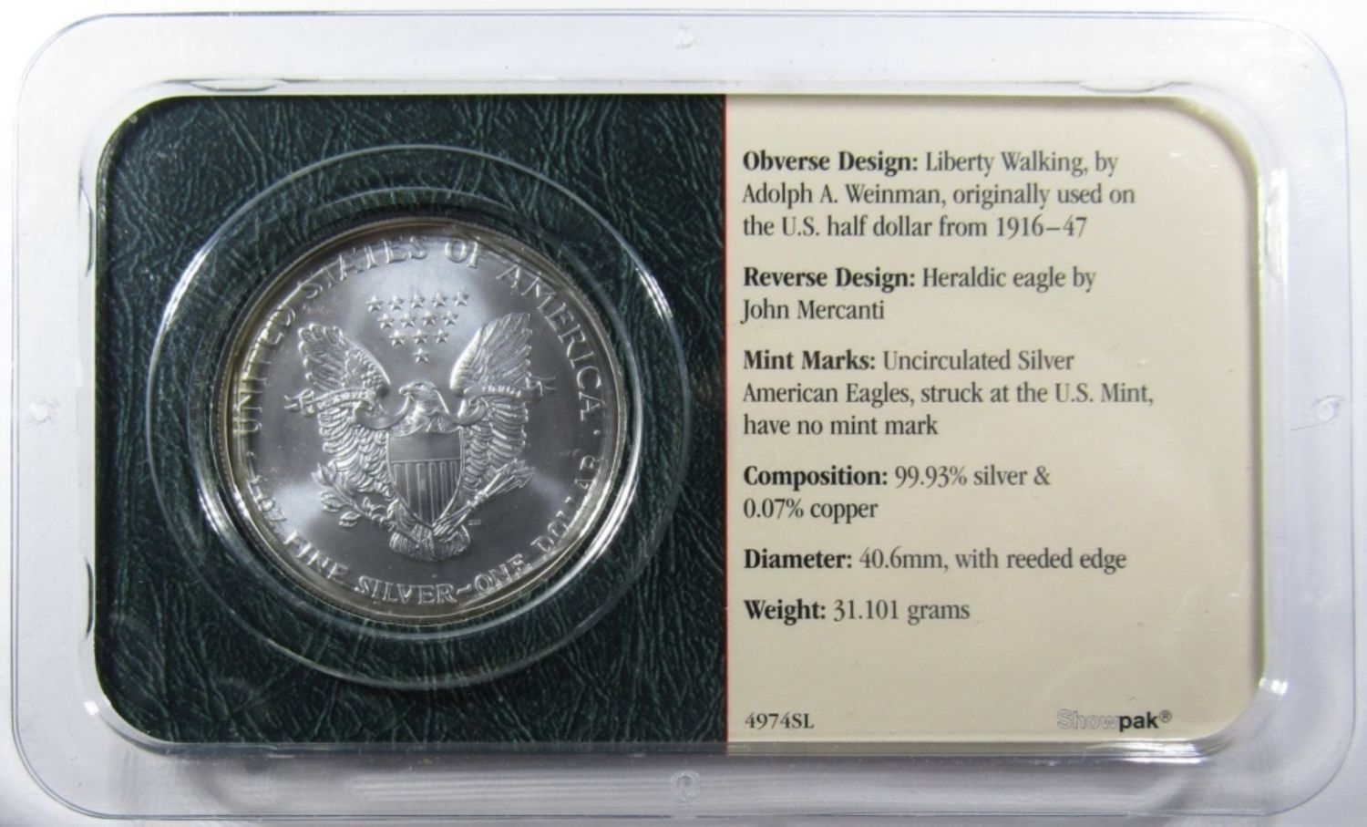 AMERICAN SILVER EAGLE 1ozt .999 PURE SILVER