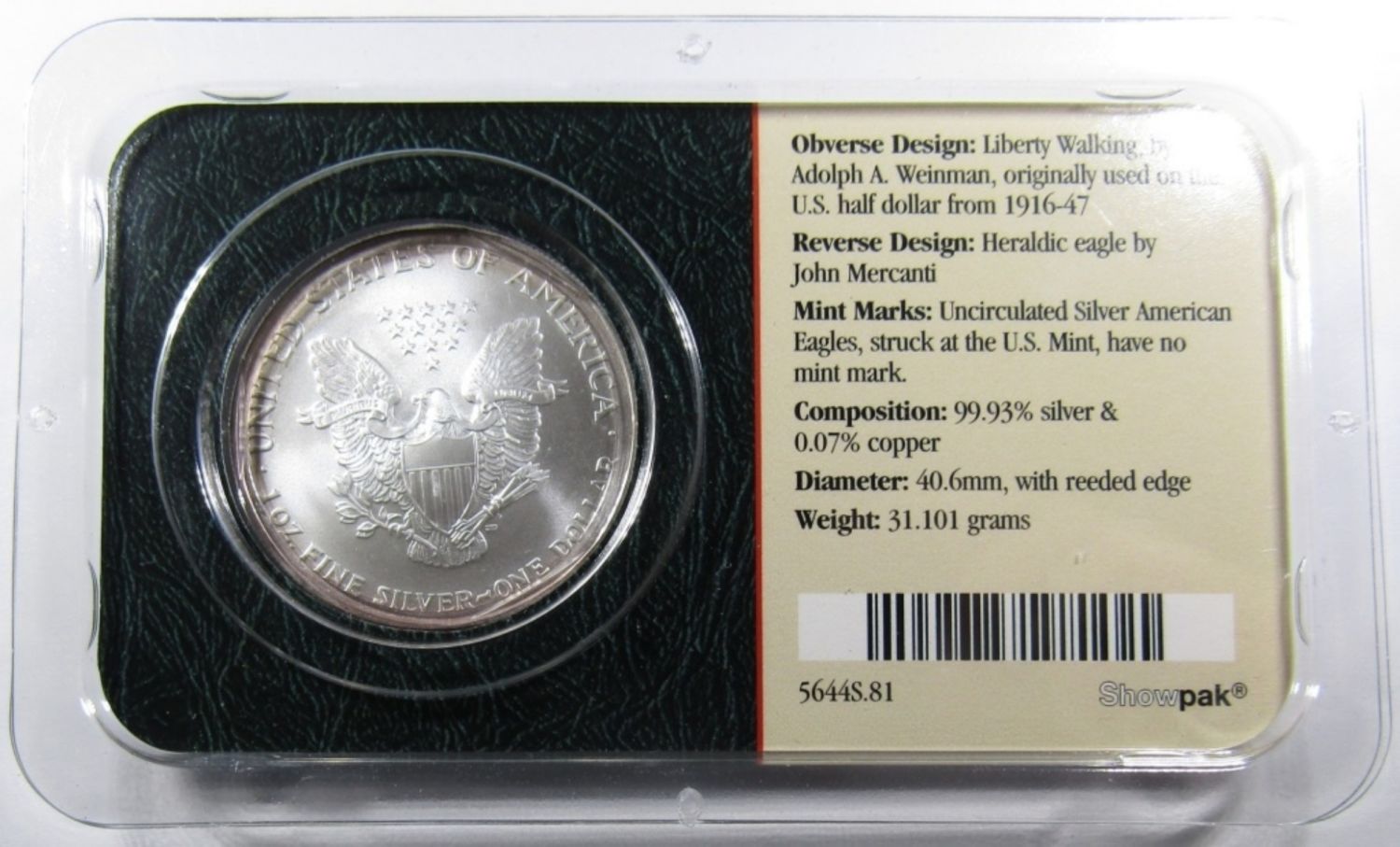 AMERICAN SILVER EAGLE 1ozt .999 PURE SILVER