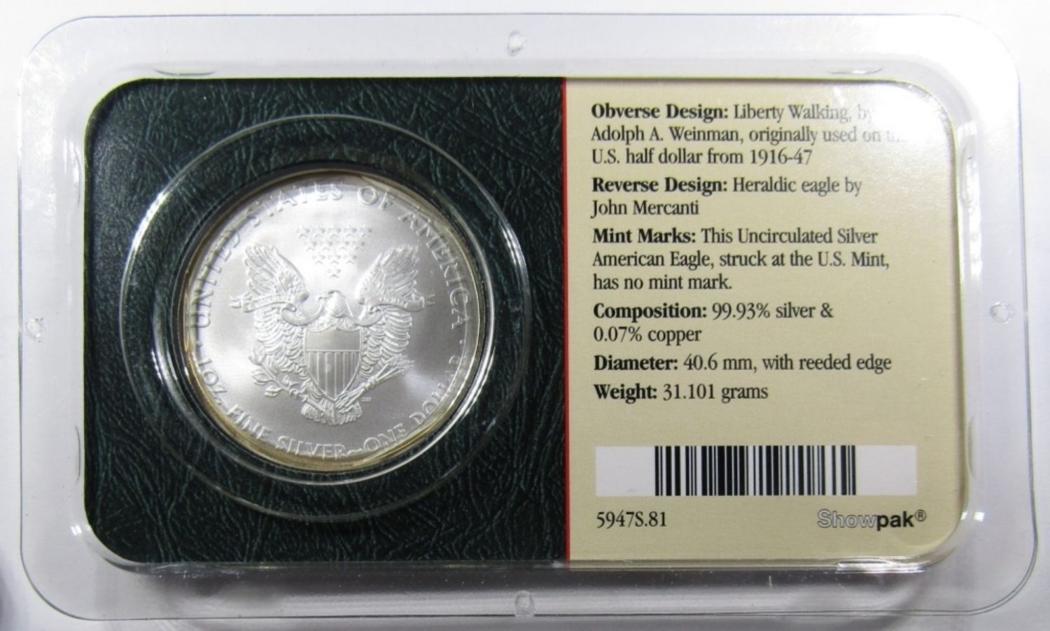 AMERICAN SILVER EAGLE 1ozt .999 PURE SILVER
