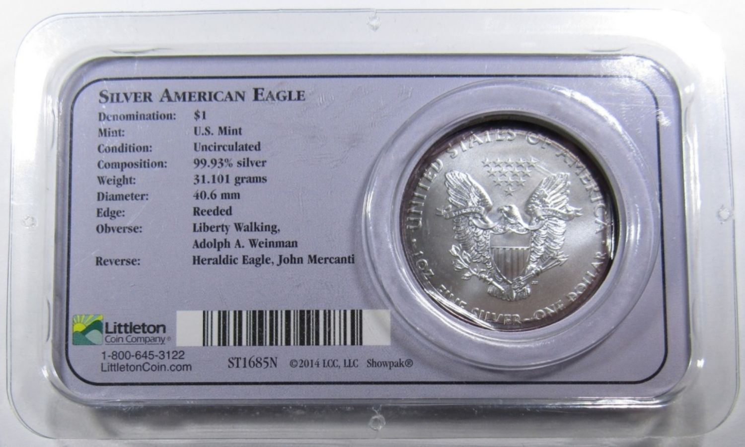 AMERICAN SILVER EAGLE 1ozt .999 PURE SILVER