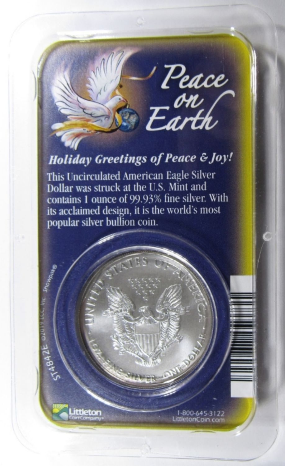 AMERICAN SILVER EAGLE 1ozt .999 PURE SILVER “PEACE ON EARTH” DESIGN