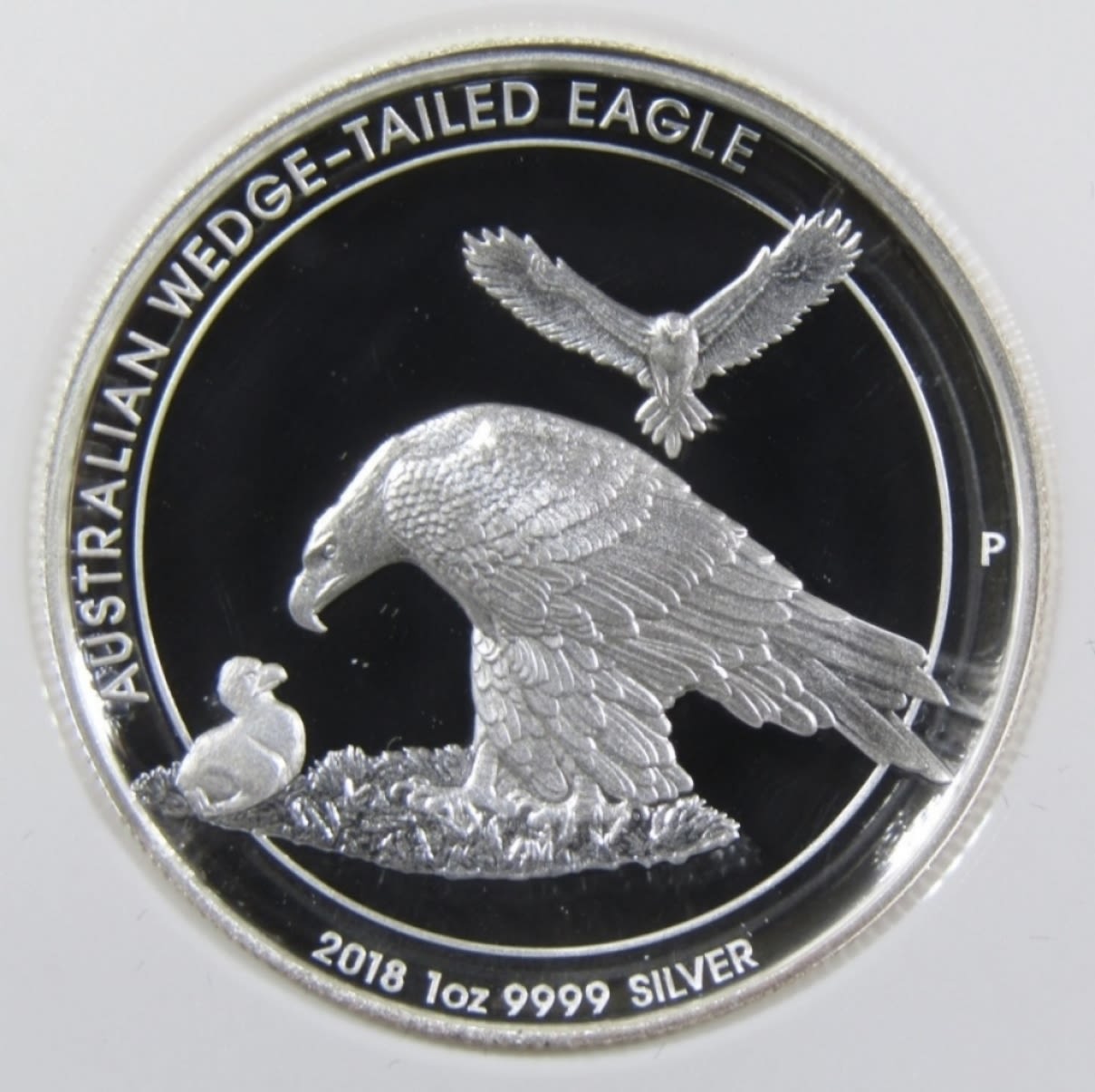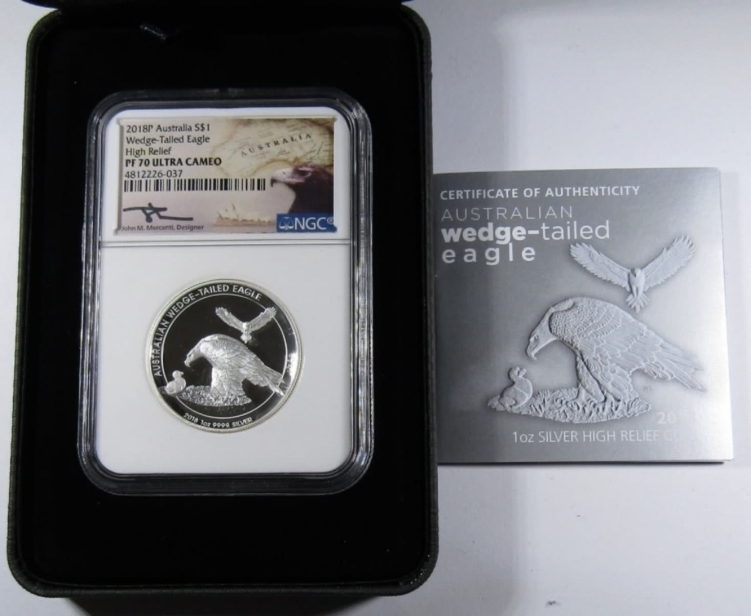 WEDGE-TAILED EAGLE, HIGH RELIEF 1oz .999 SILVER, JOHN MERCANTI SIGNED, IN OGP W/ COA