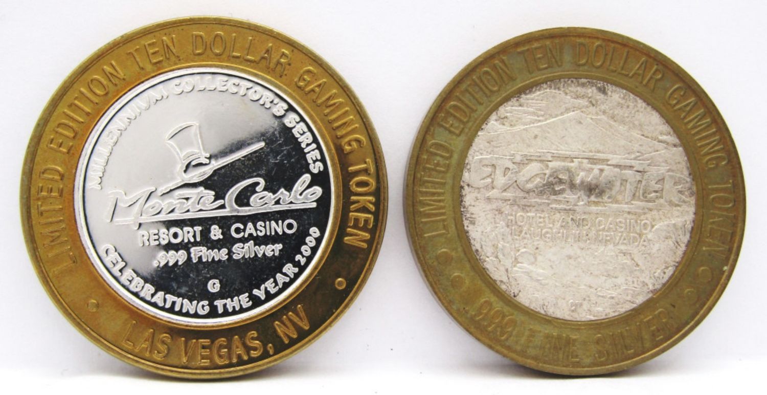 2- $10 GAMING CASINO TOKENS SILVER .999