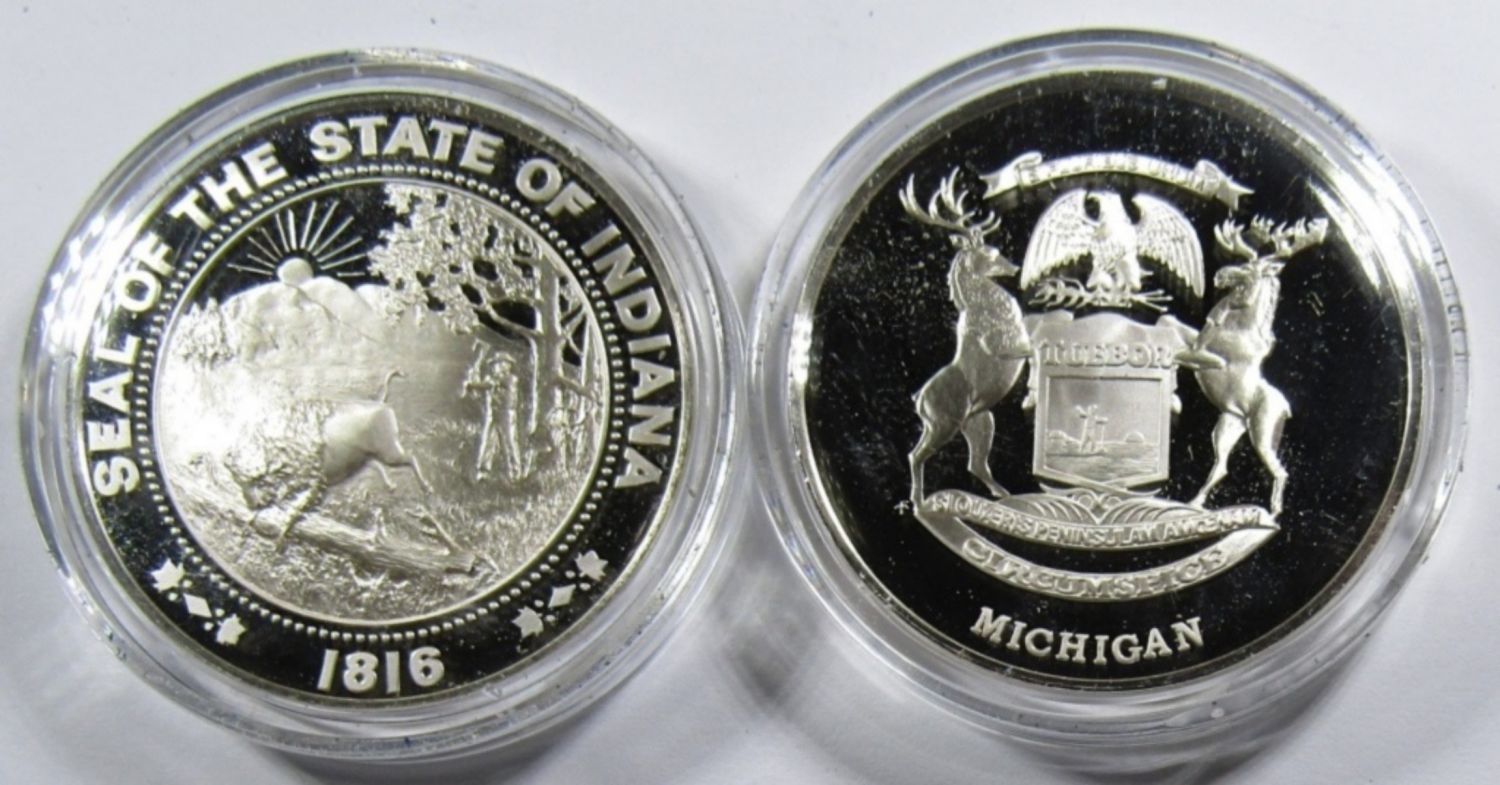 2 ozt .925 SILVER TOTAL: (2) 21 DWT STERLING PROOF COMMEMORATIVE ROUNDS.