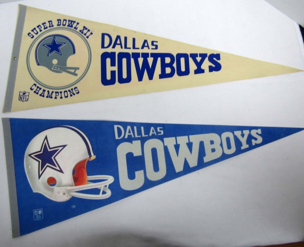 Dallas Cowboys- Very Nice Condition, No Folds, Offical Licensed Product from the NFL, One is Super Bowl XII Champions white and blue print, other is blue and grey print, both have the helmets on them