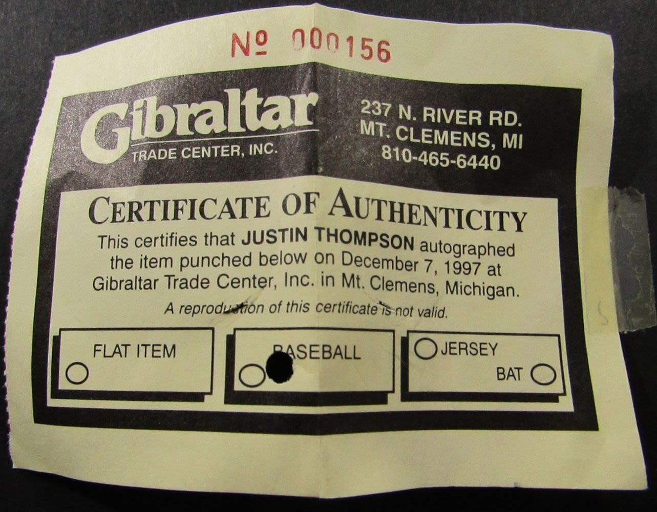 Autograph Baseball,COA Gibraltar Trade Center #000156