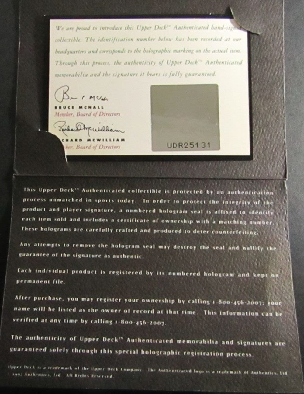 Autograph Baseball, COA UPPER DECK #UDR25131