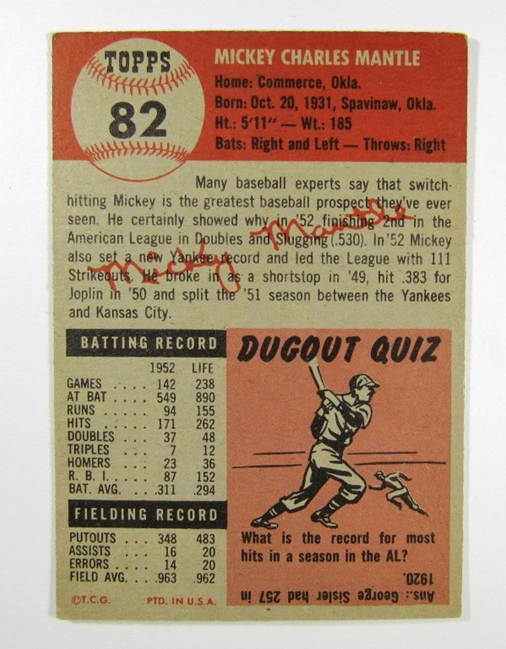 THIS CARD HAS PRINT DOTS UPPER HALF of CARD – STILL NICE CARD – LIGHT CORNER WEAR VGEX/EX – KEY CARD HOFer