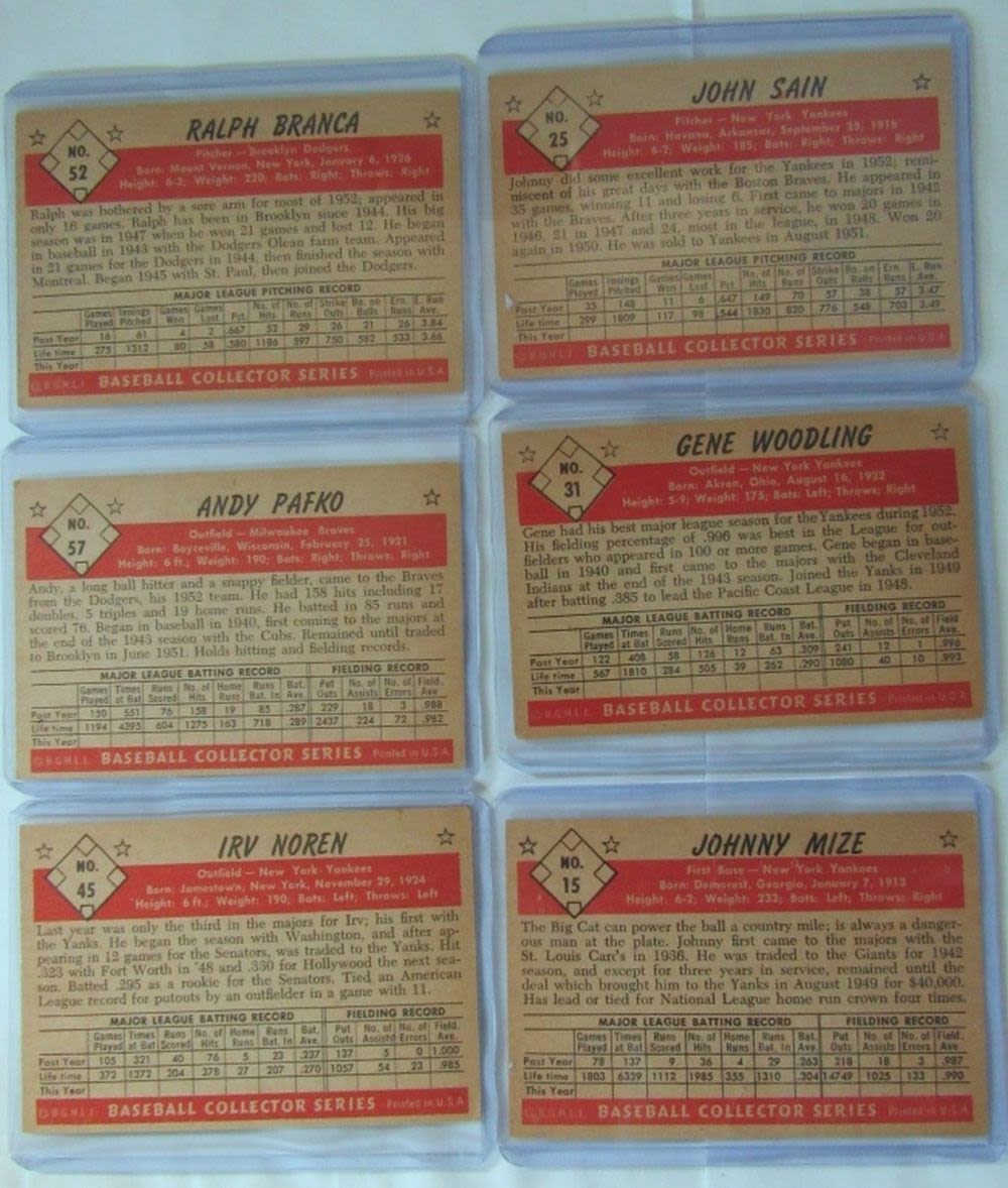 ALL DIFFERENT – VERY NICE EM-EX++ (6) VG/GOOD – FEW EM/NM includes #15 MIZE vg crease, #25 SAIN, #31 WOODLING, #45 NOREN, #52 BRANCA, #57 PAFKO plus(4) EXTRA DUPLICATE CARDS for a total of (46) CARDS