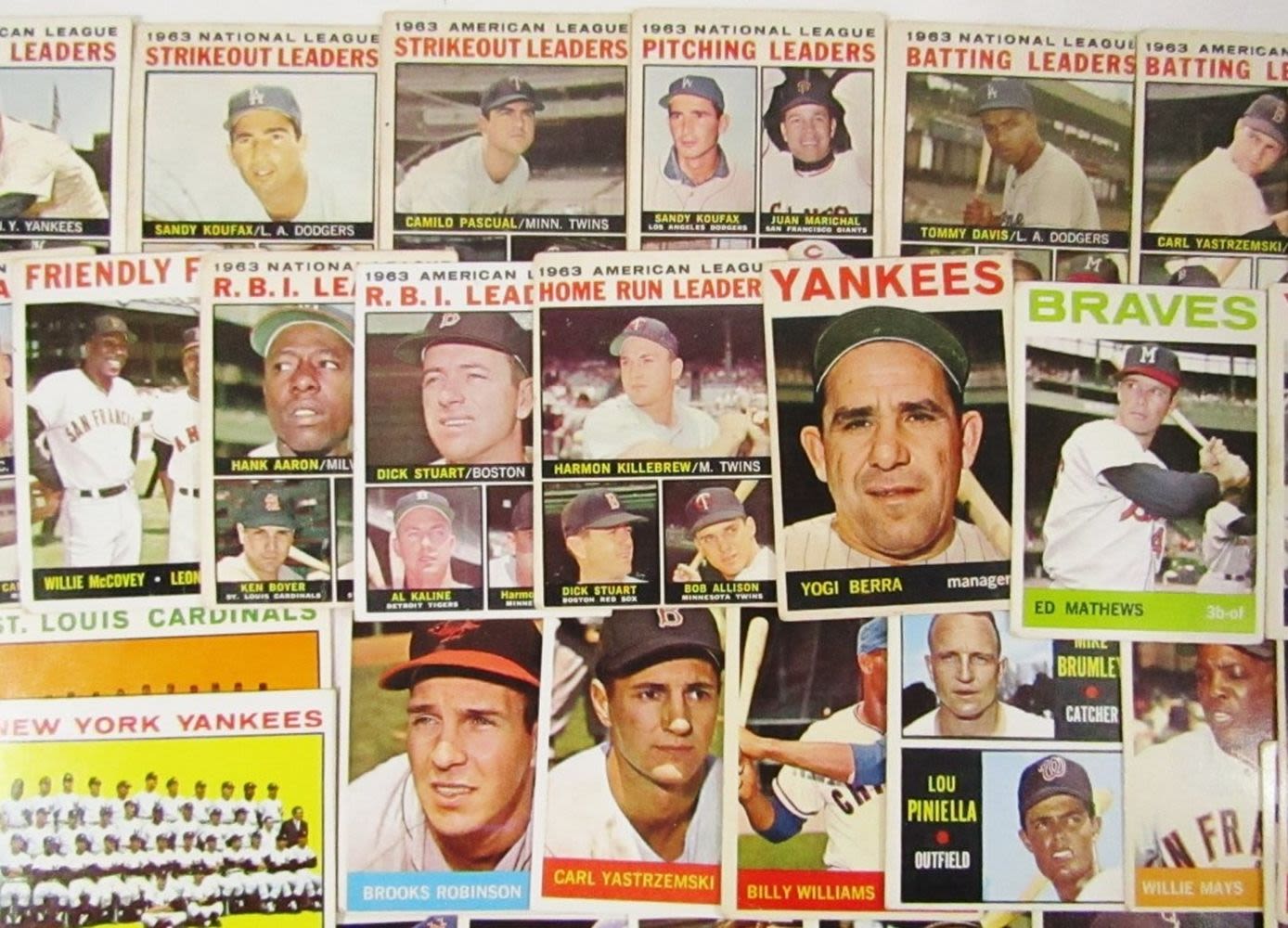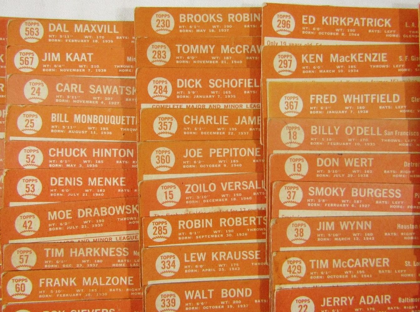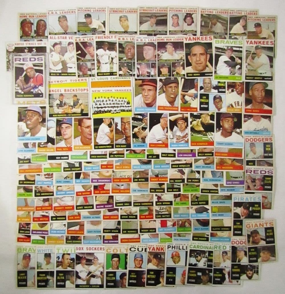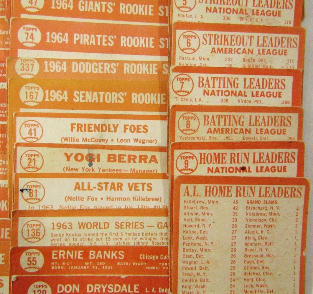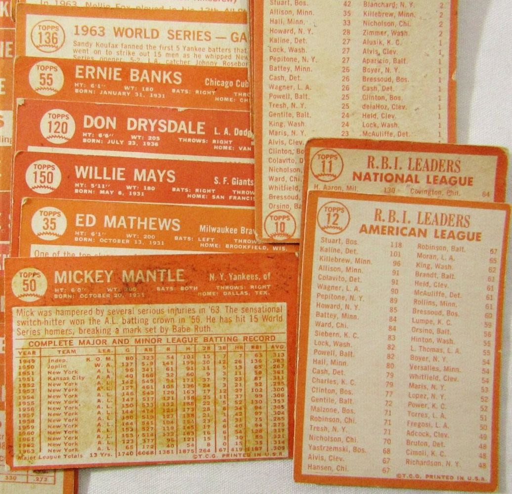 includes (16) LEAGUE LEADERS & WS CARDS; #21 BERRA, #35 MATHEWS, #50 MANTLE with Glue on Back, #55 BANKS, #120 DRYSDALE, #150 AMYS, #167 PINIELLA ROOKIE, #175 WILLIAMS, #210 YASTRZEMSKI, #230 B ROBINSON, #260 FRANK