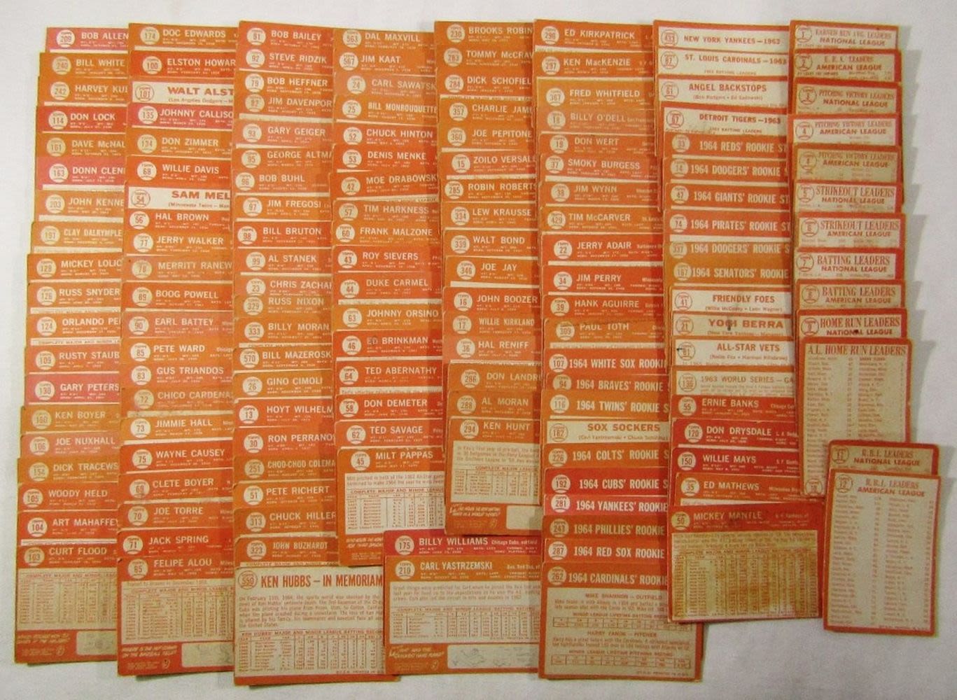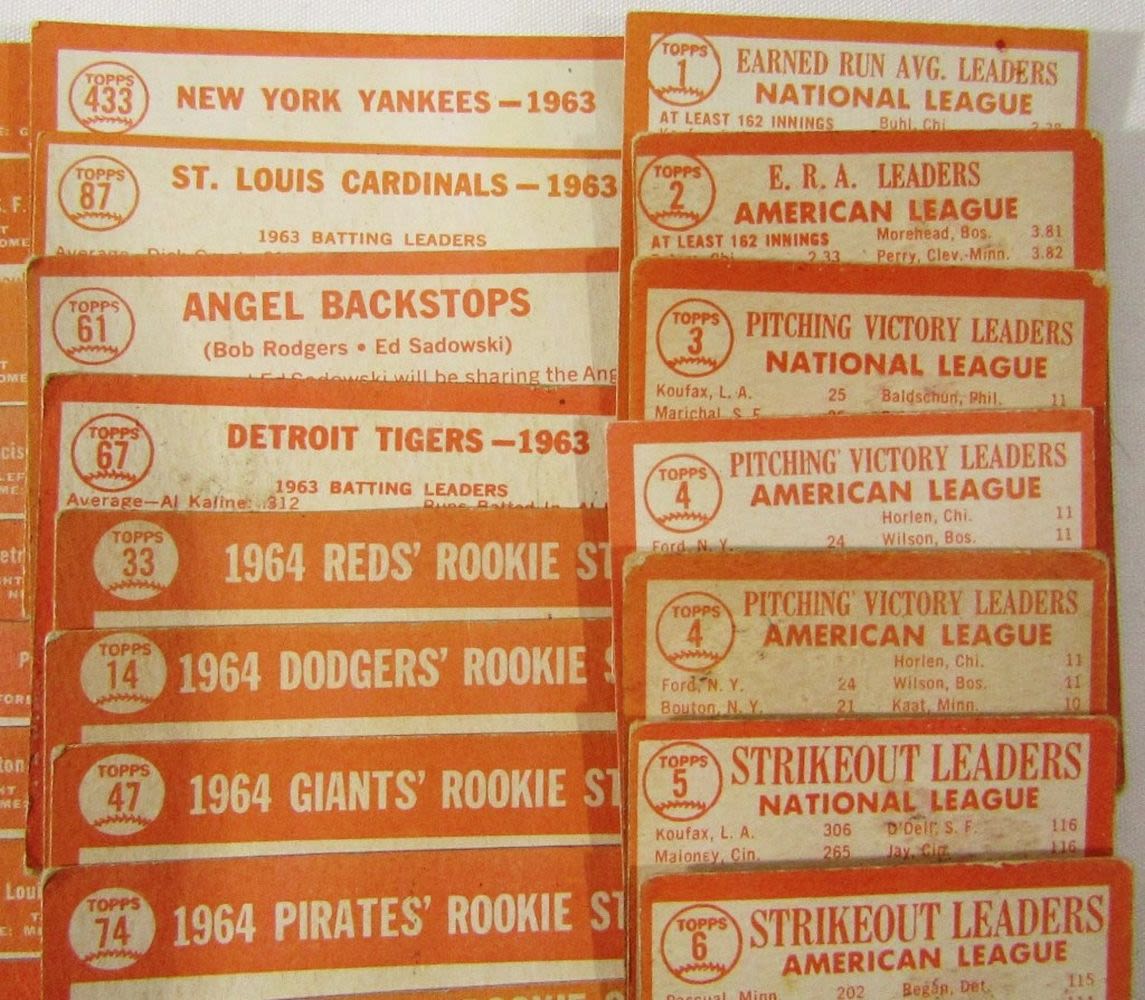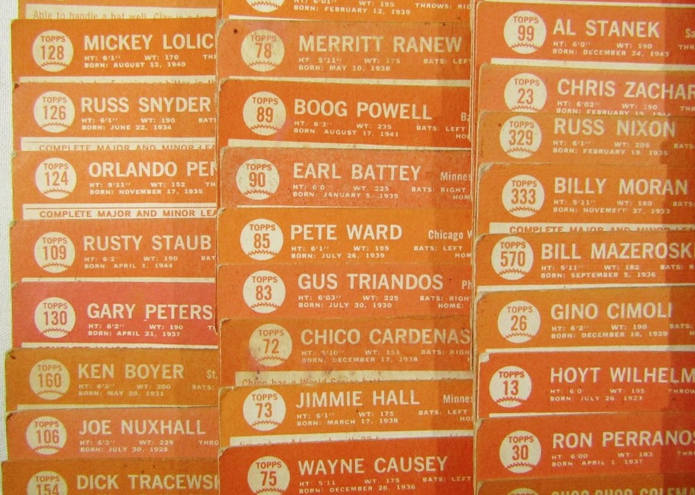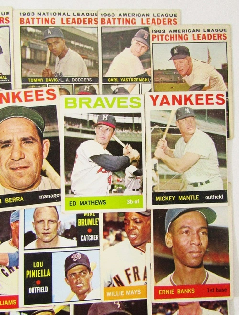 includes (16) LEAGUE LEADERS & WS CARDS; #21 BERRA, #35 MATHEWS, #50 MANTLE with Glue on Back, #55 BANKS, #120 DRYSDALE, #150 AMYS, #167 PINIELLA ROOKIE, #175 WILLIAMS, #210 YASTRZEMSKI, #230 B ROBINSON, #260 FRANK