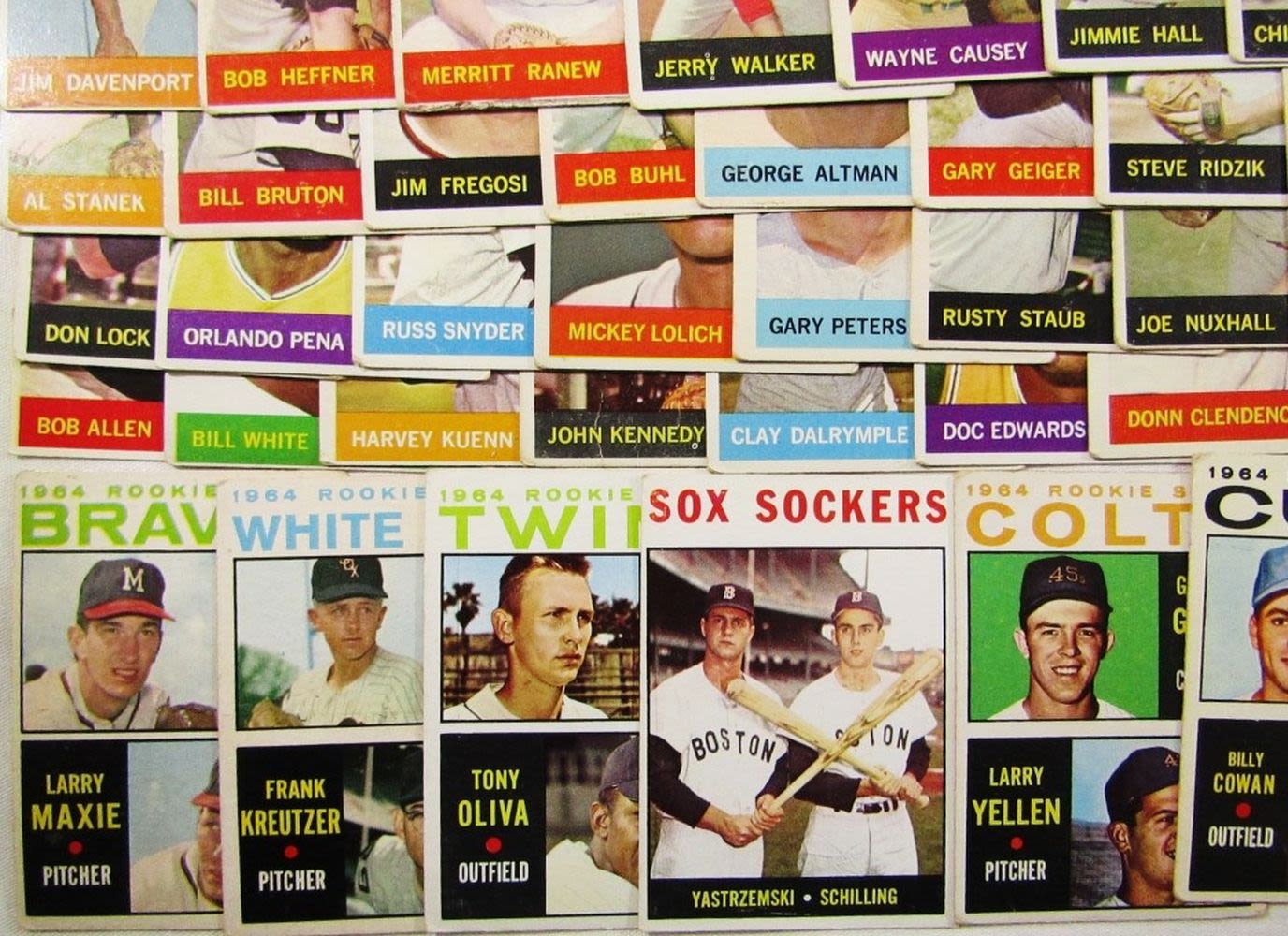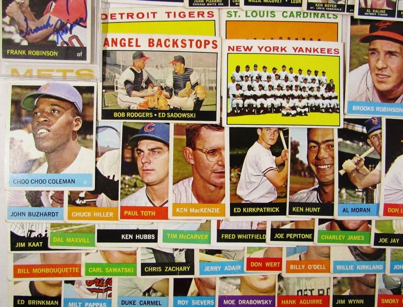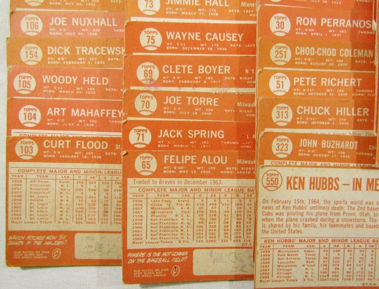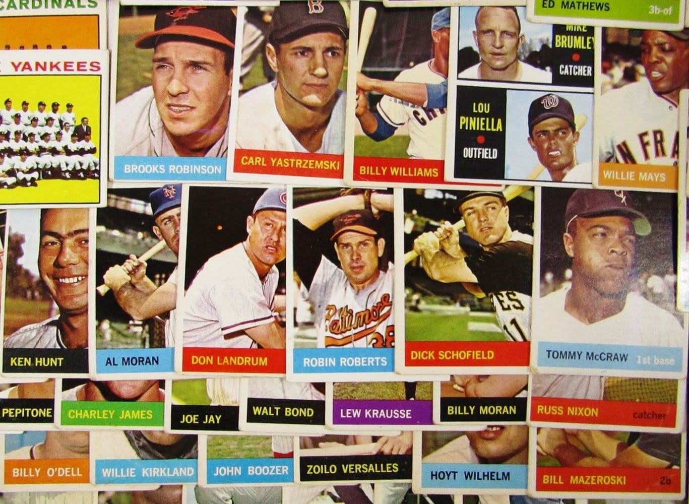 includes (16) LEAGUE LEADERS & WS CARDS; #21 BERRA, #35 MATHEWS, #50 MANTLE with Glue on Back, #55 BANKS, #120 DRYSDALE, #150 AMYS, #167 PINIELLA ROOKIE, #175 WILLIAMS, #210 YASTRZEMSKI, #230 B ROBINSON, #260 FRANK