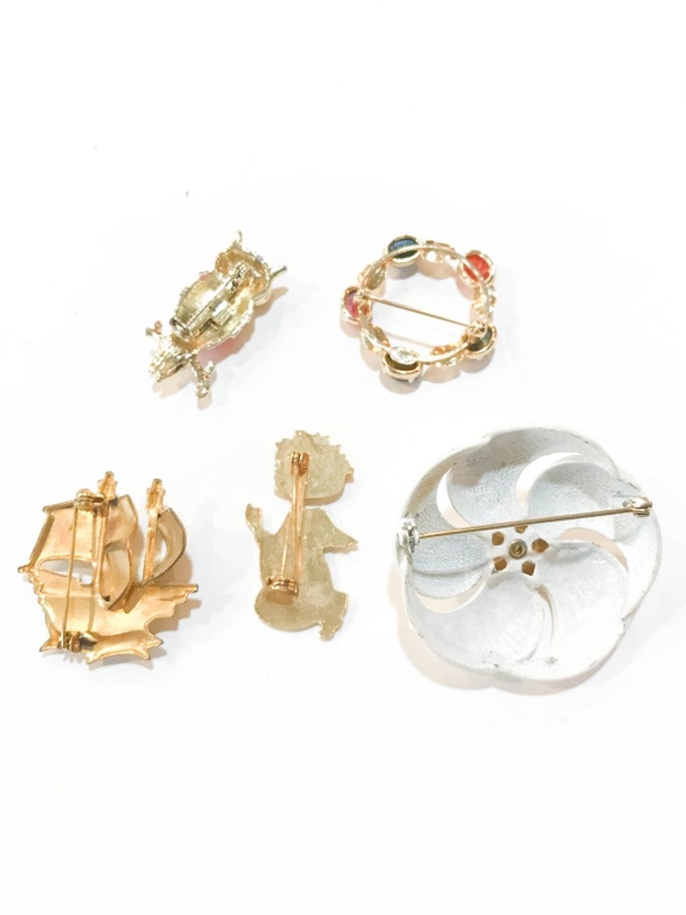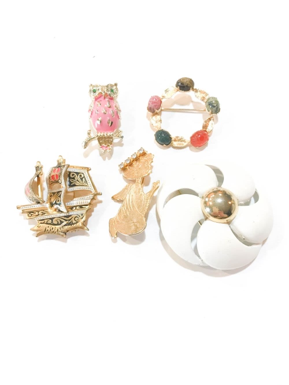 DAMASCENE SHIP BROOCH, FLORAL, OWL AND MORE
