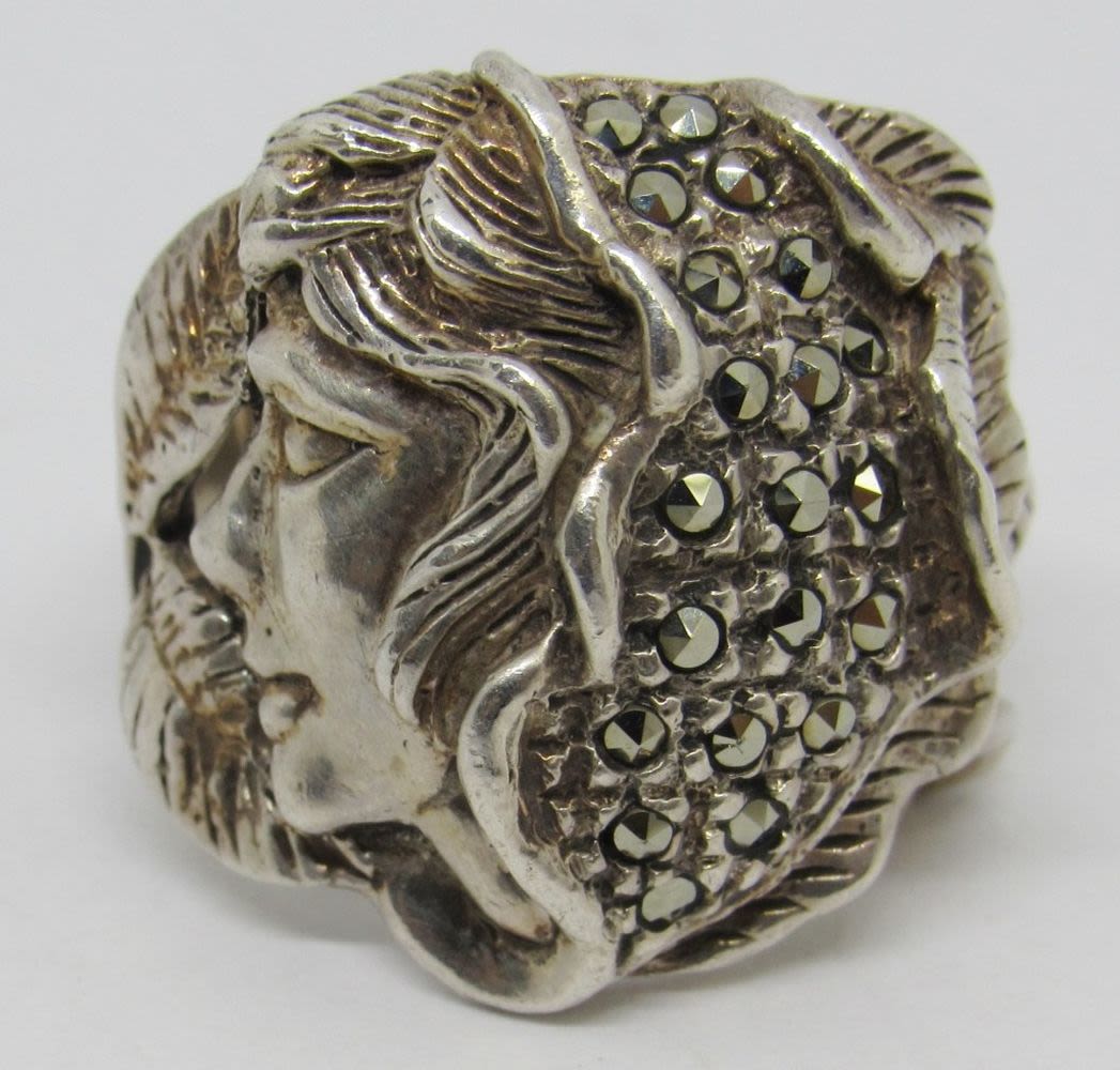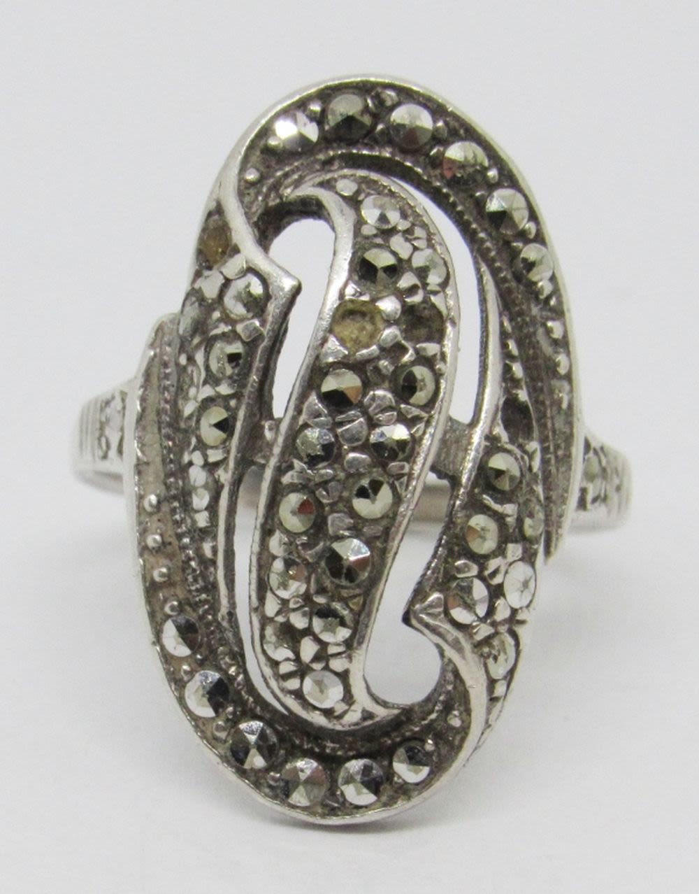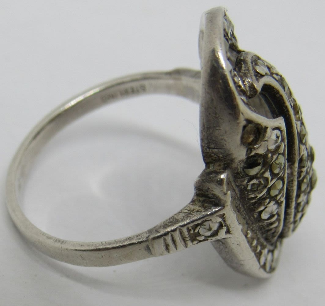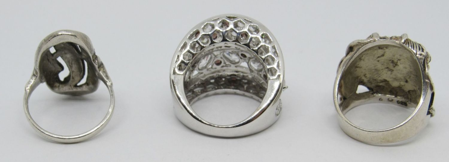 3-STERLING RINGS WITH UNIQUE DESIGNS, MARCASITE & SPARKLY GEM STONES, SIZES 6-6 1/2 (15.5 DWT)