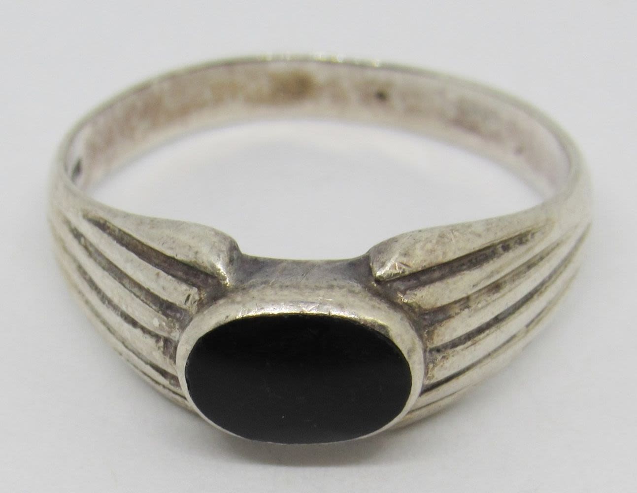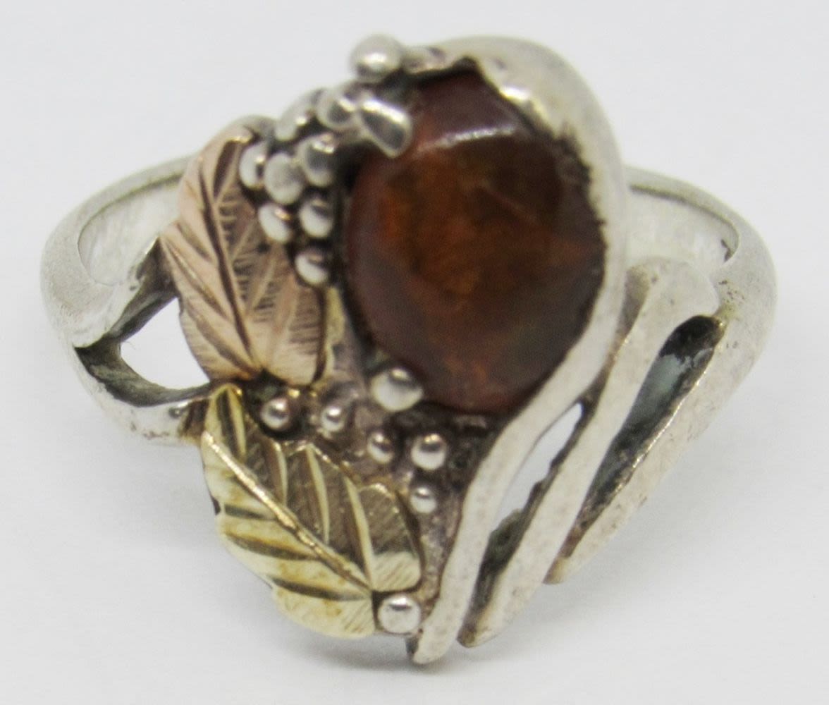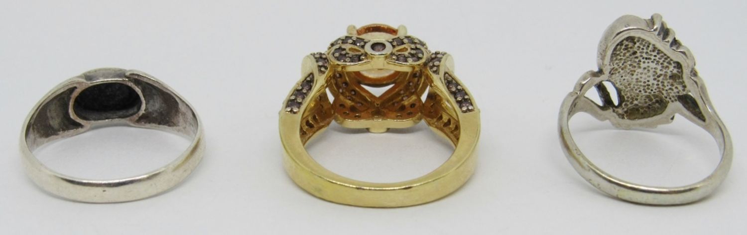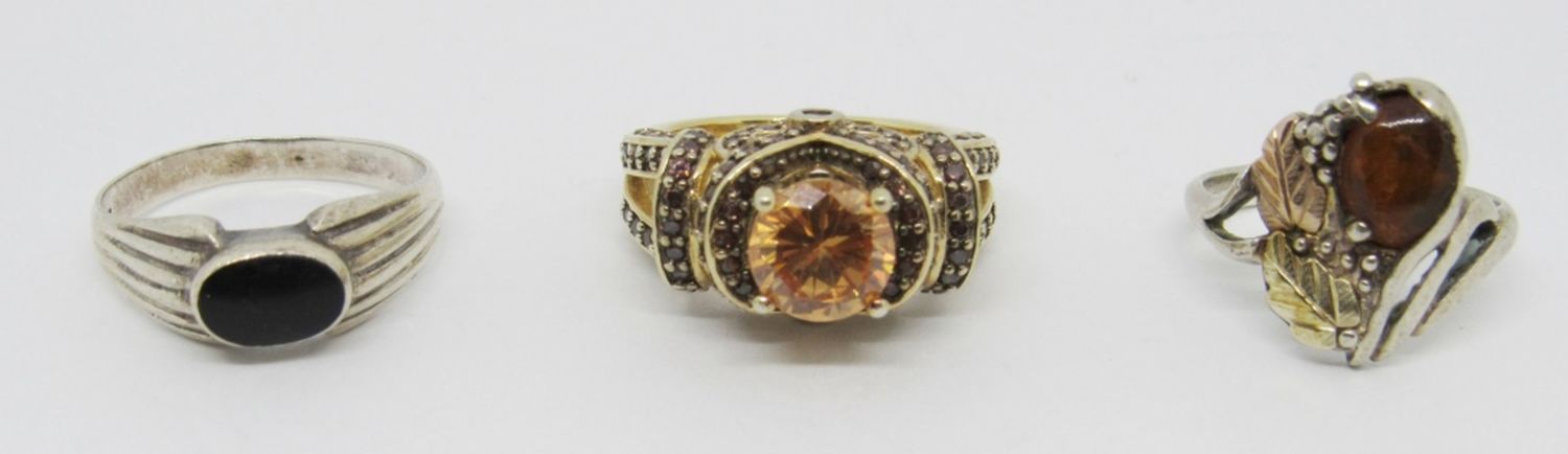 3-STERLING RINGS WITH UNIQUE DESIGNS, AMBER & BLACK STONES, SIZES 5 1/2-7 1/2 (7.7 DWT)