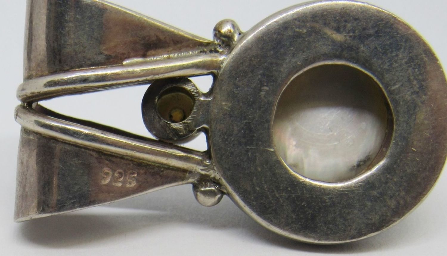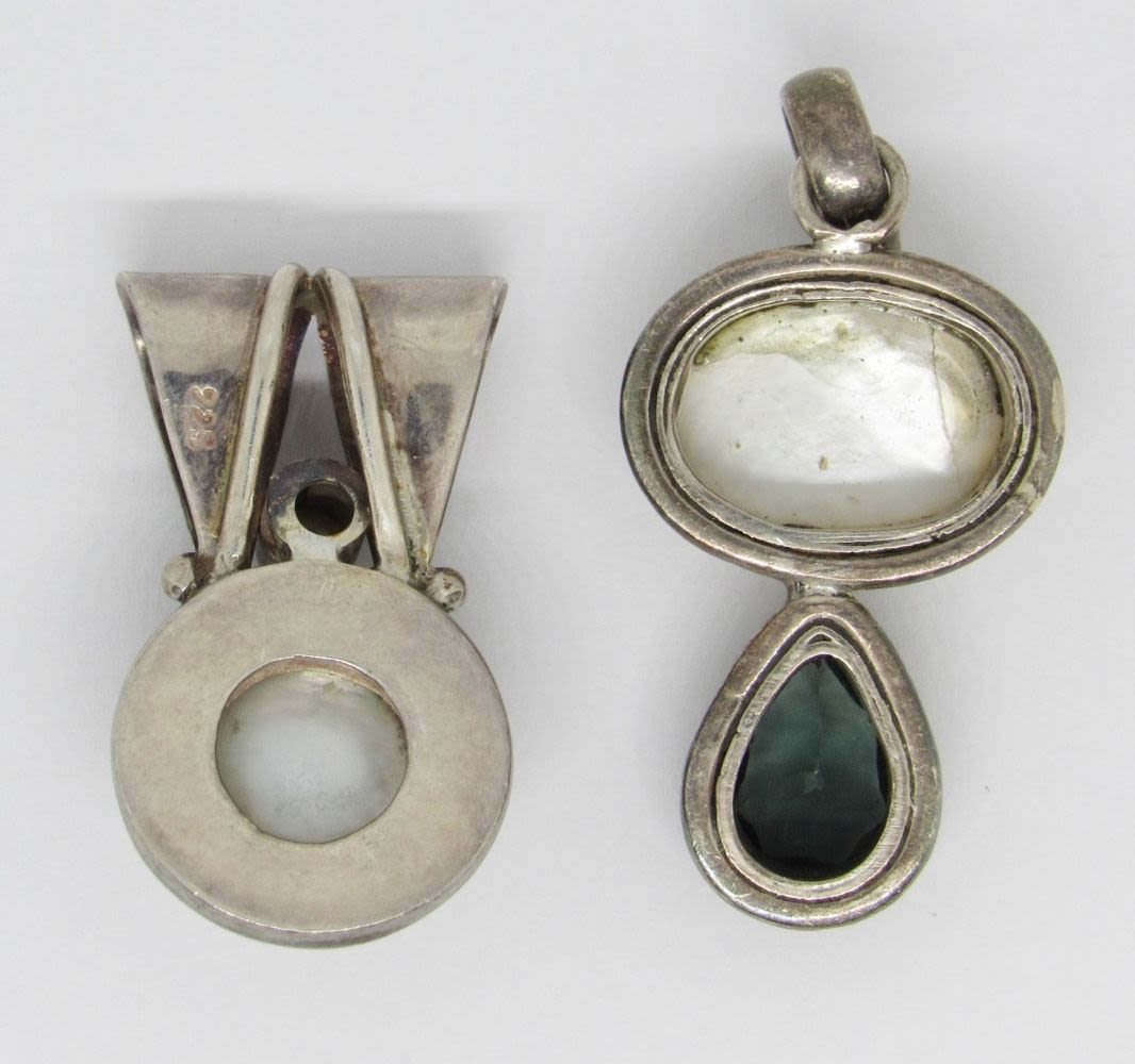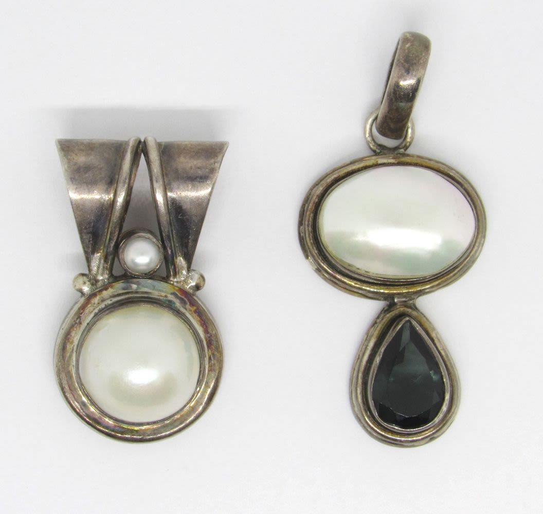 SET OF 2 VINTAGE STERLING SILVER PENDANTS, PEARL AND GEM STONE DESIGN, MARKED 925 (13.8 DWT)