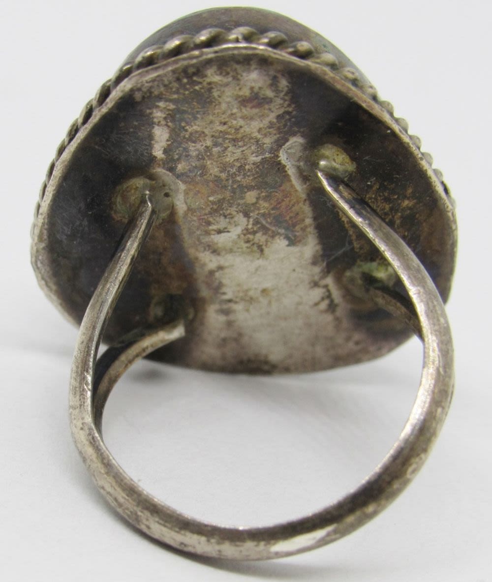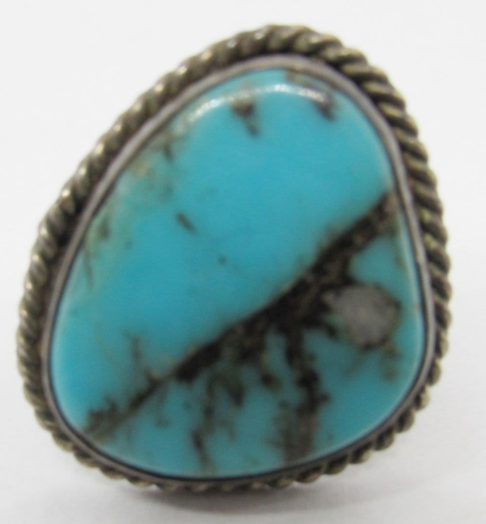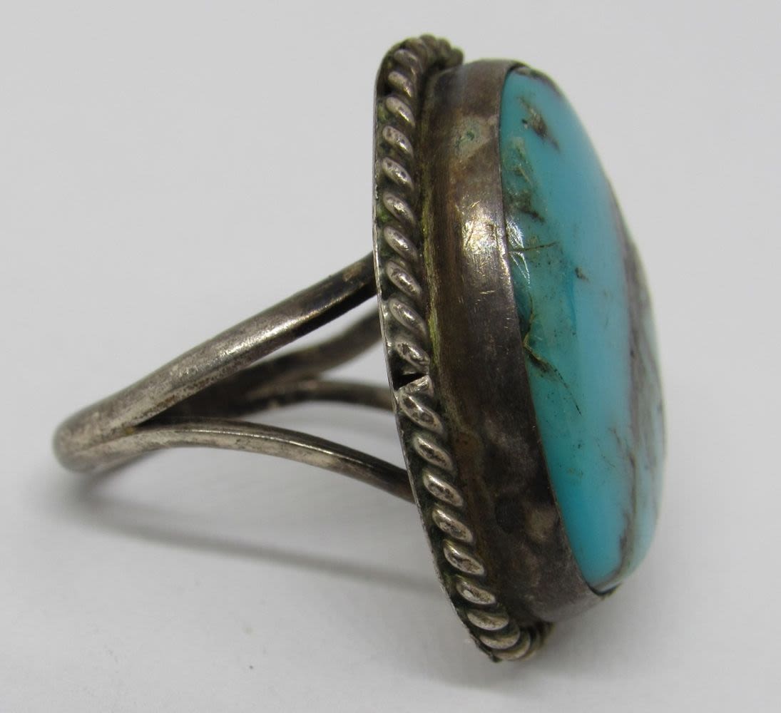STERLING SILVER VINTAGE RING WITH BEAUTIFUL LARGE TURQUOISE STONE, SIZE 6 (5 DWT)
