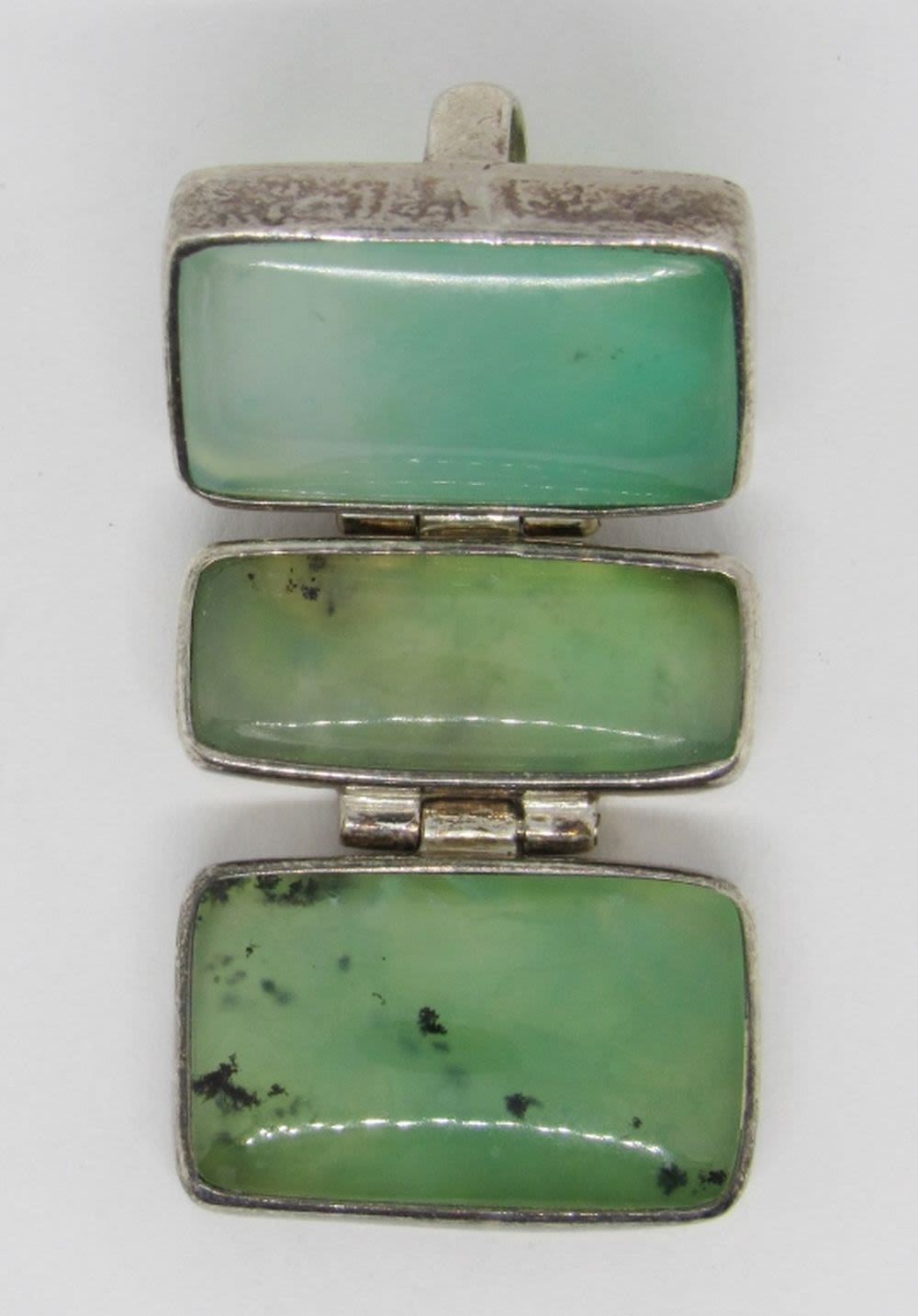 STERLING SILVER PENDANT WITH 3 JADEITE STONES, MARKED 925 (9 DWT)