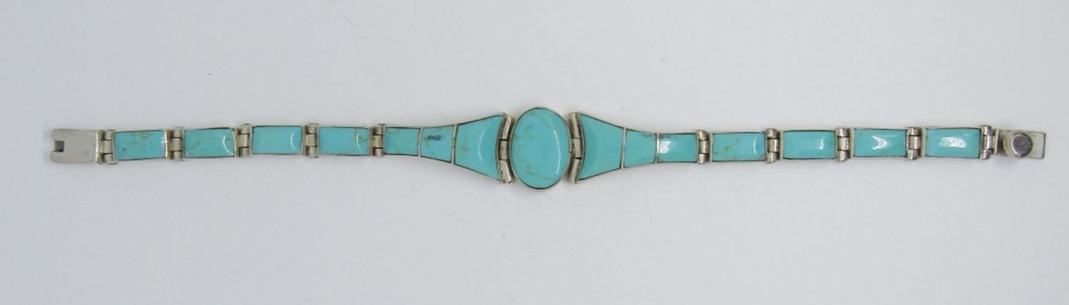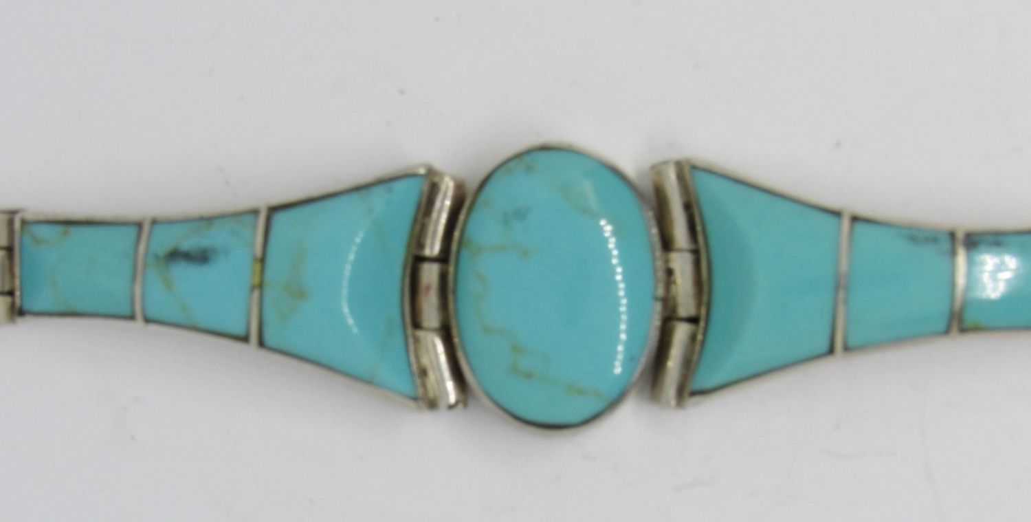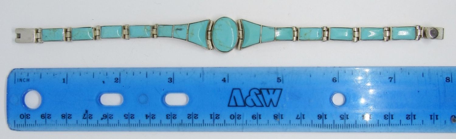 STERLING SILVER FASHION BRACELET WITH TURQUOISE STONE INLAYS, 8″, MEXICO TN-50 (18 DWT)