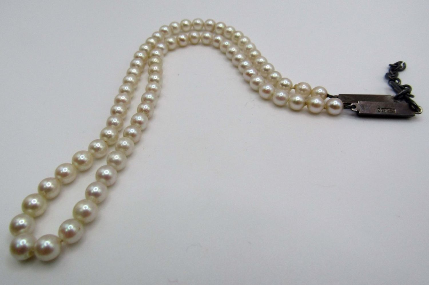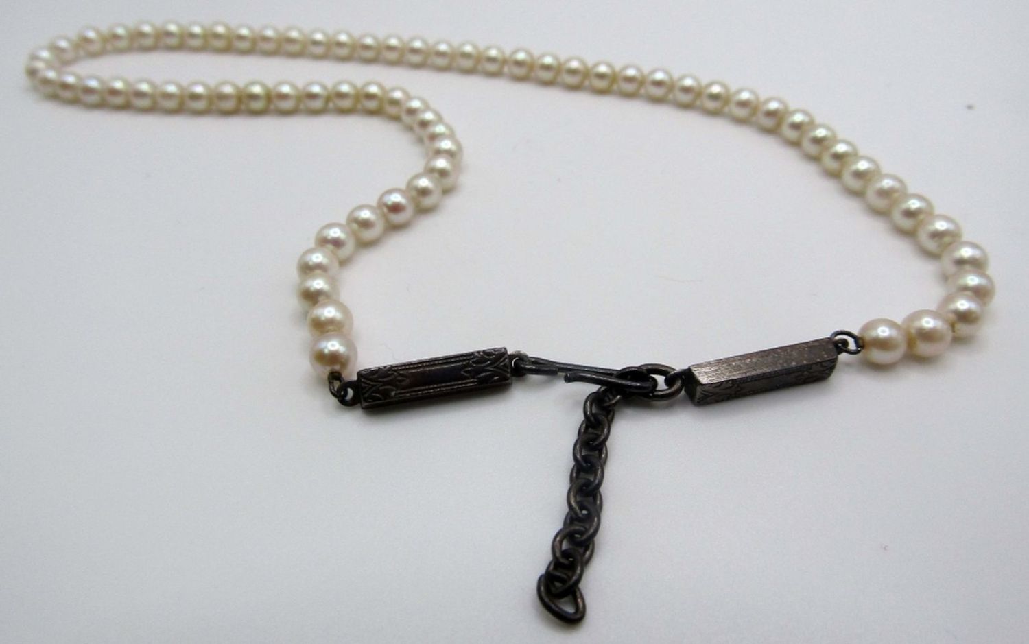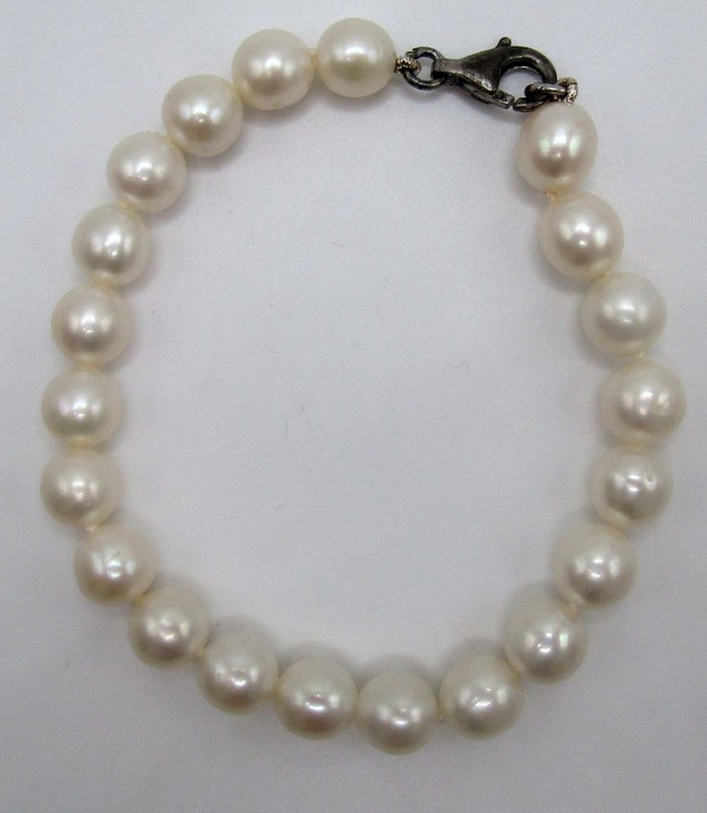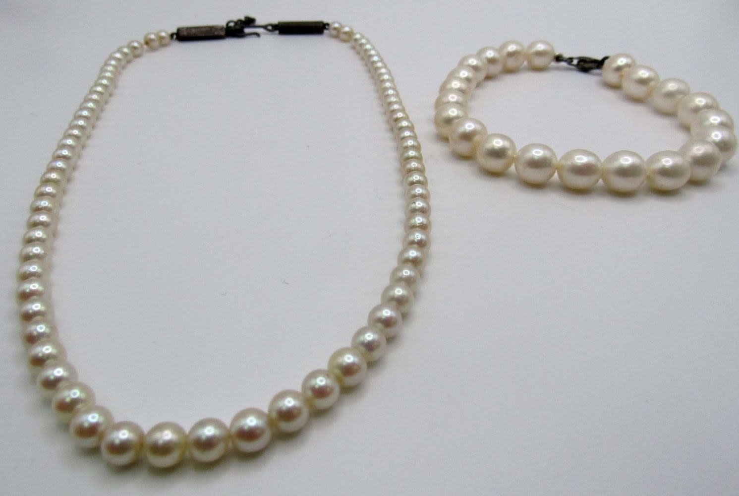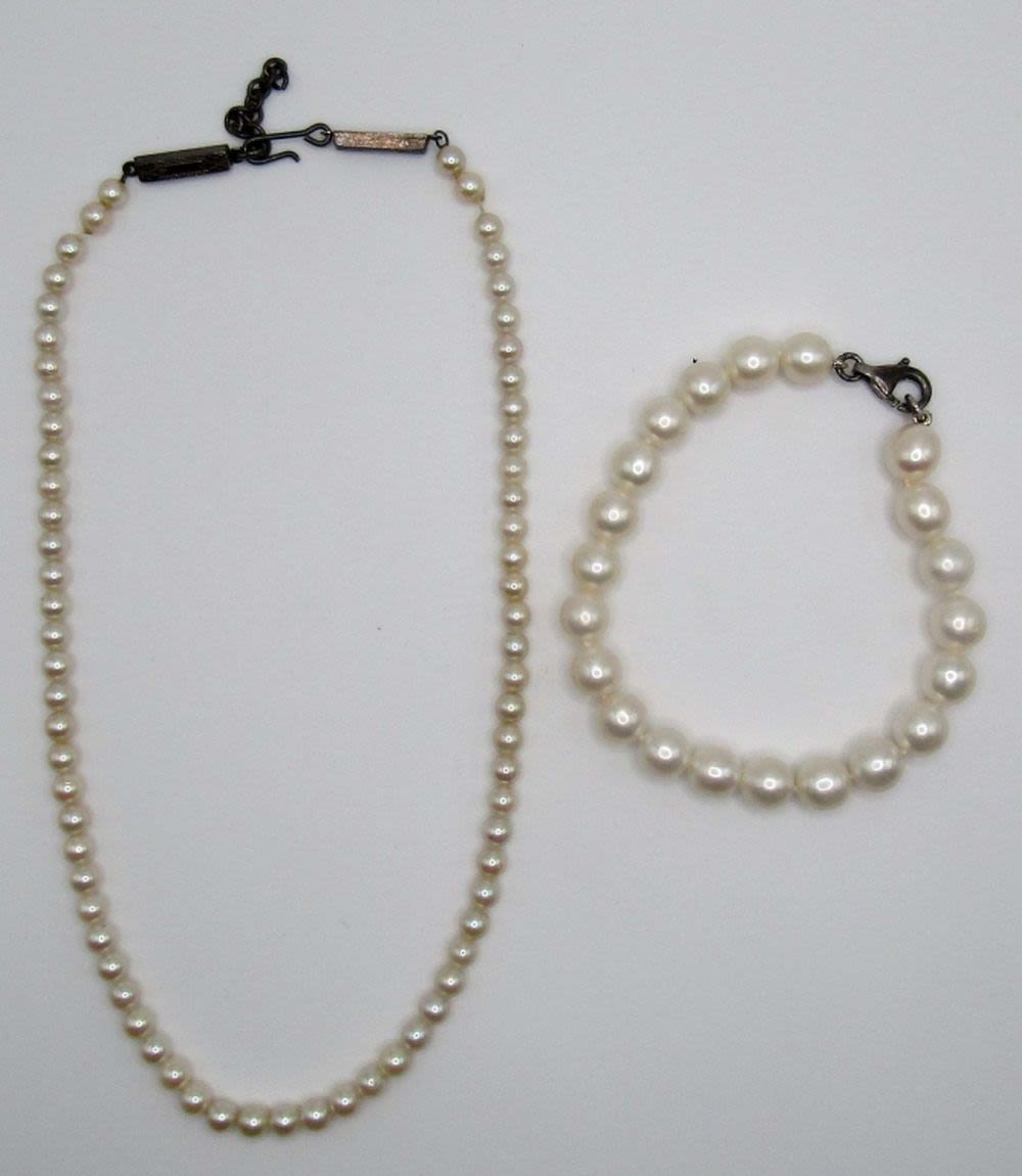 Necklace marked sterling with small pearls 16in in length, Bracelet 8in in length bigger pearls marked with 925