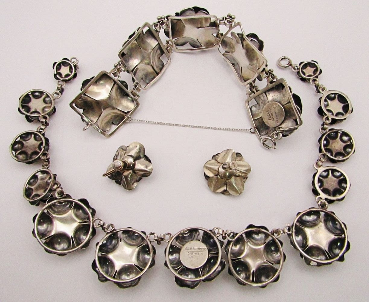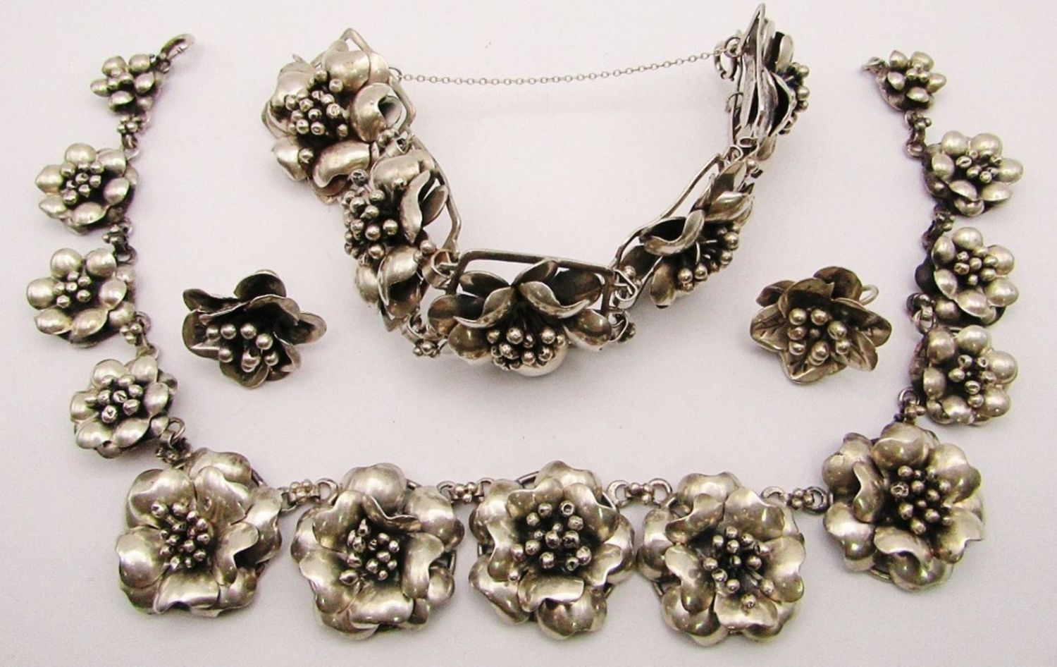 NECKLACE 12″ LONG with WORKING CLASP, 7″ BRACELET & SCREW BACK EARRINGS (92 DWT)