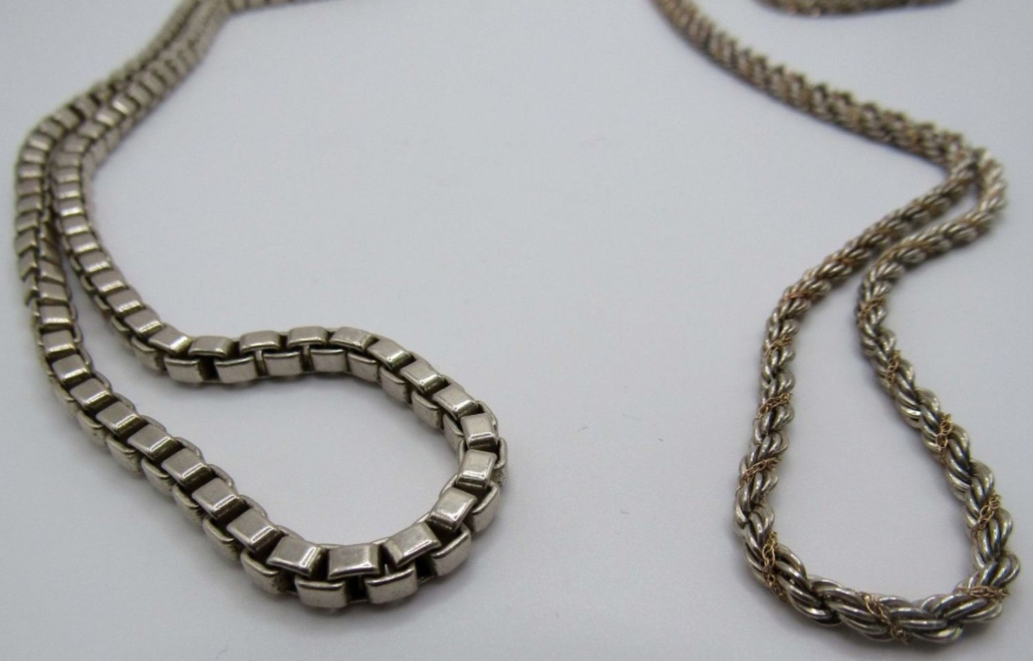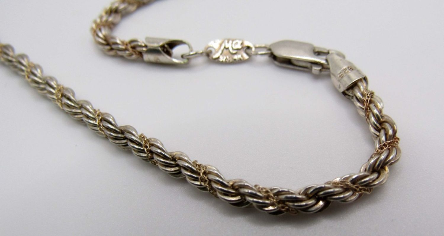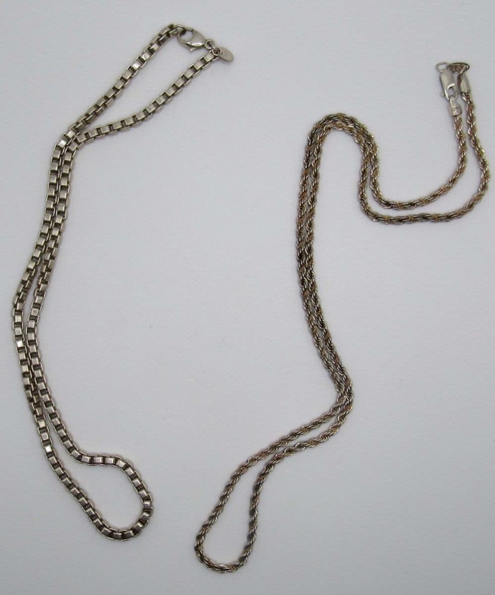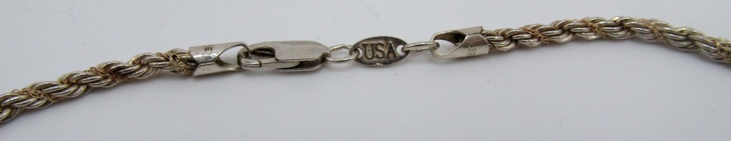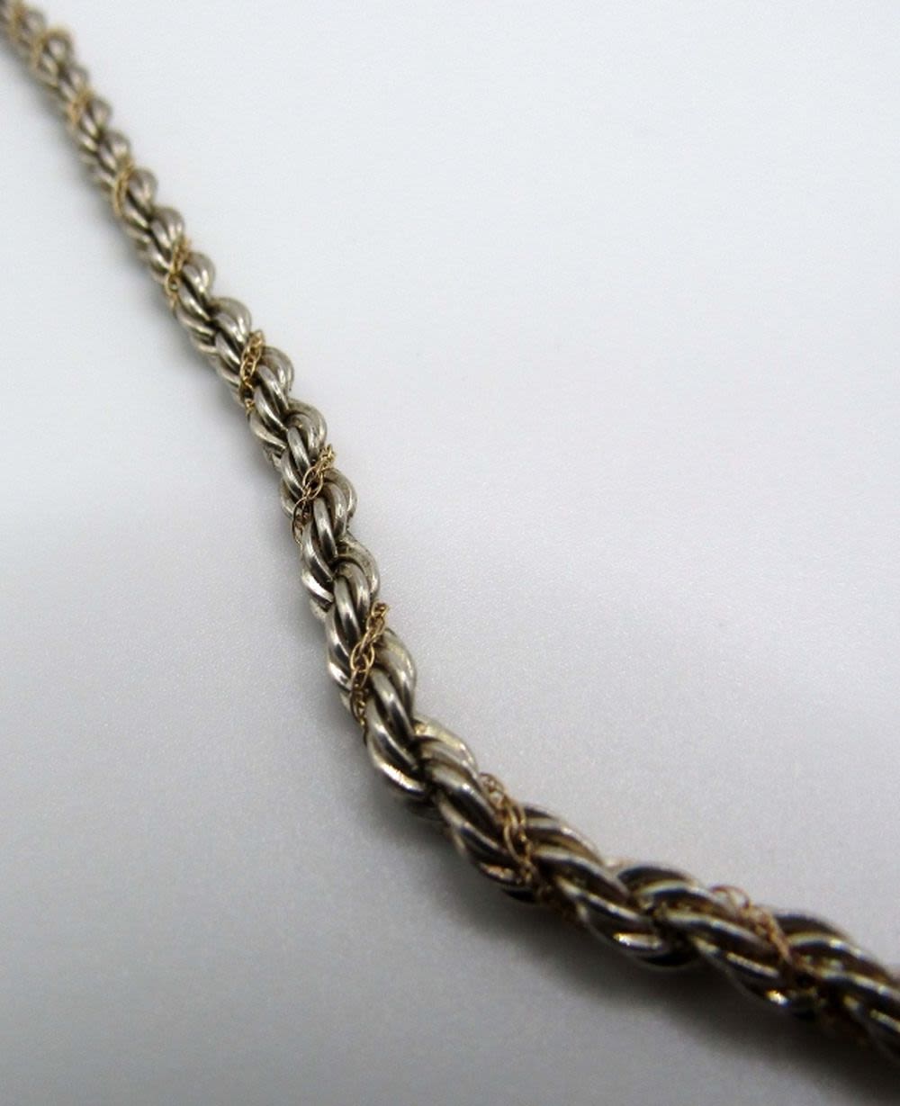 Rope chain 24in length W/ goldchain wrapped in the sterling marked MA 925 14K, Rolo necklace 18 in, marked 925 Tiffany and co 35DWT