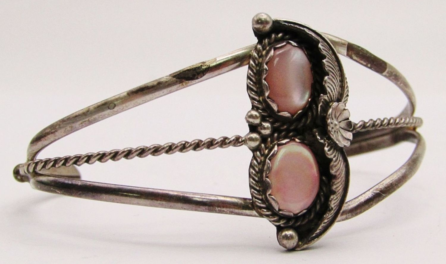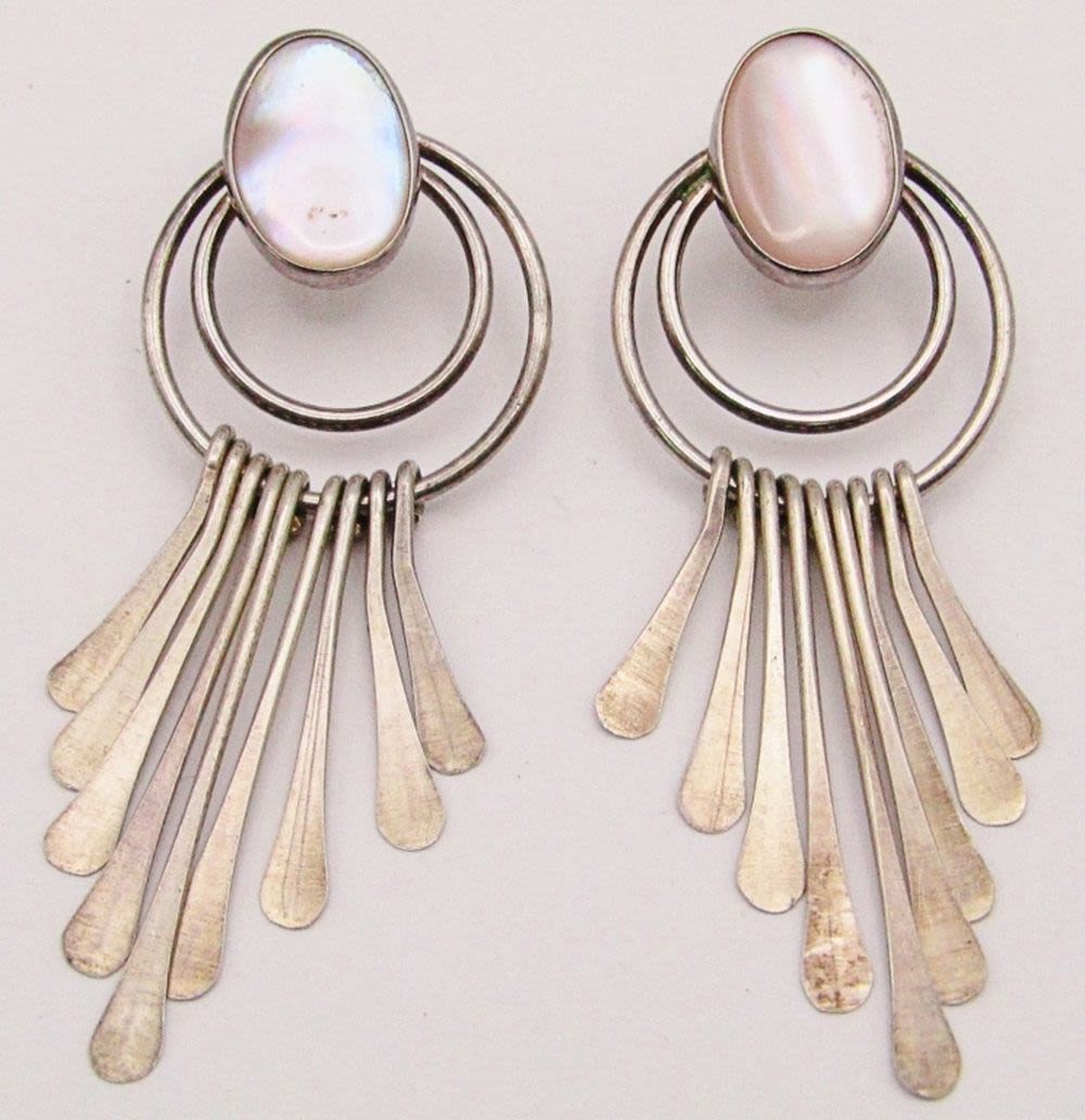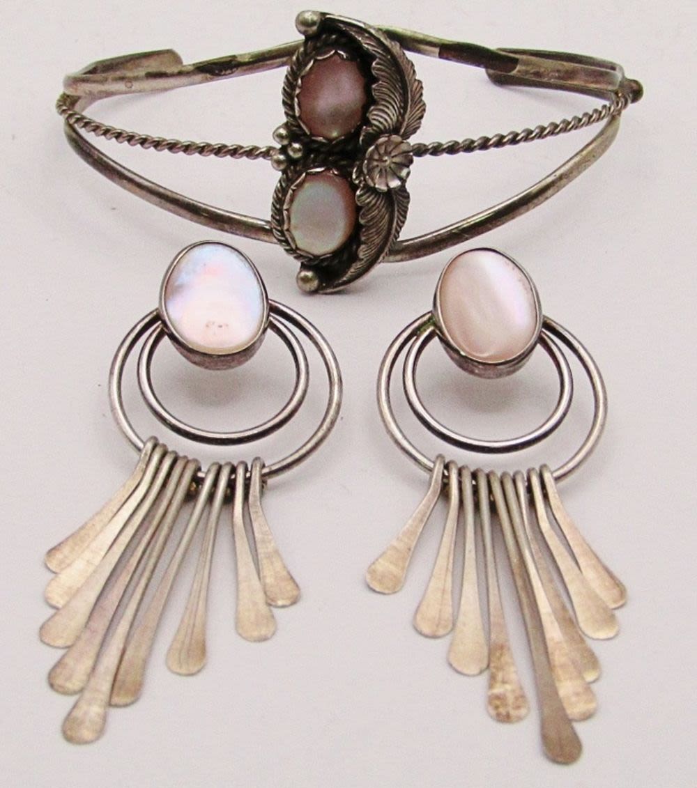 MOTHER of PEARL SET – CUFF BRACELET CLASSIC LEAF DESIGN & PIERCED DANGLE EARRINGS ( 13 DWT)