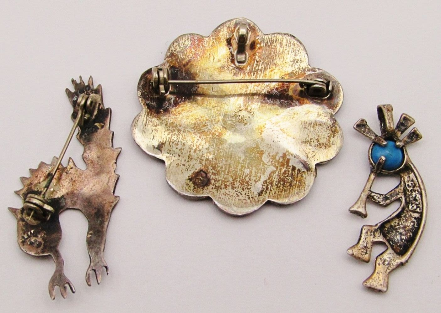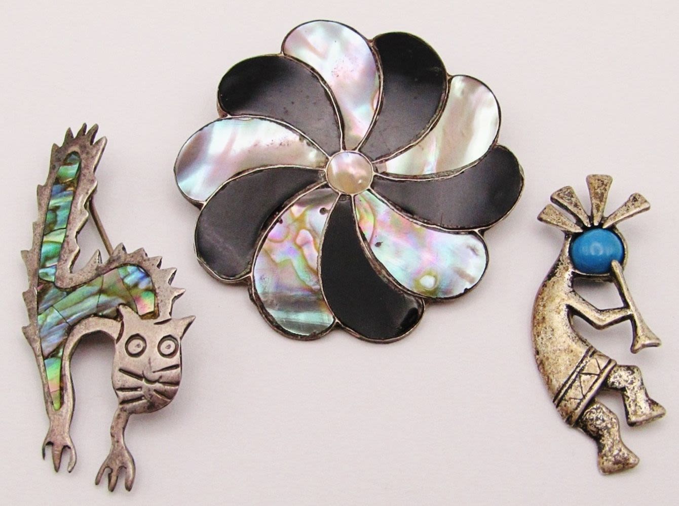 ABALONE & BLACK ONYX PIN PENDANT, SCARED CAT PIN & ZUNI PENDANT – 6 DWT
