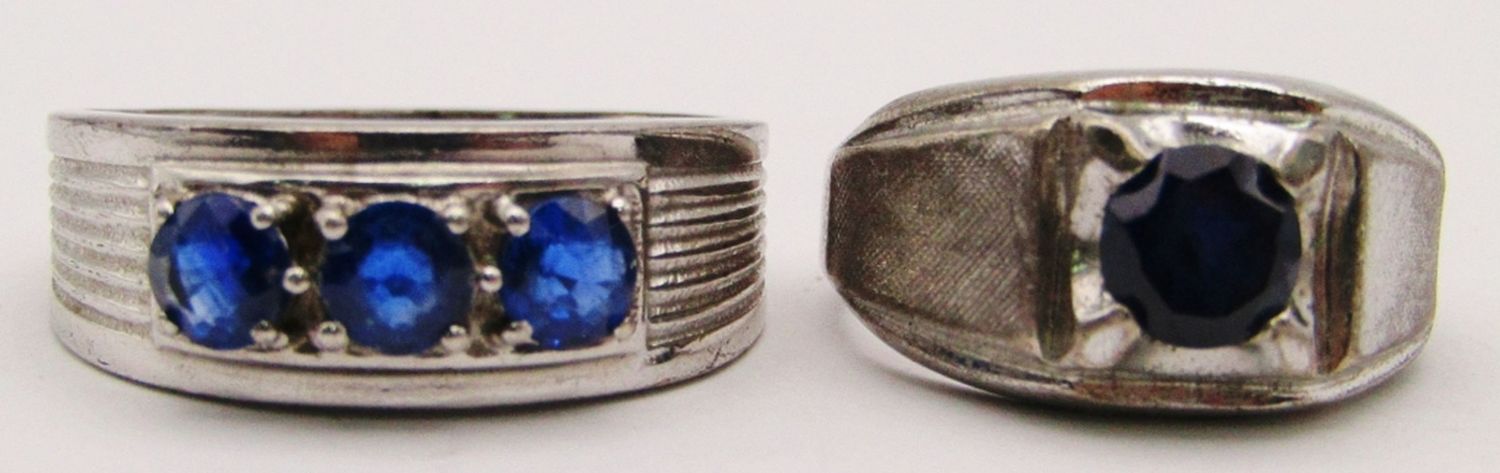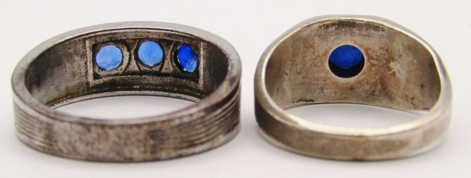 INDIA THREE STONE SIZE 13, SINGLE BLUE STONE SIZE 9 ( 11 DWT)