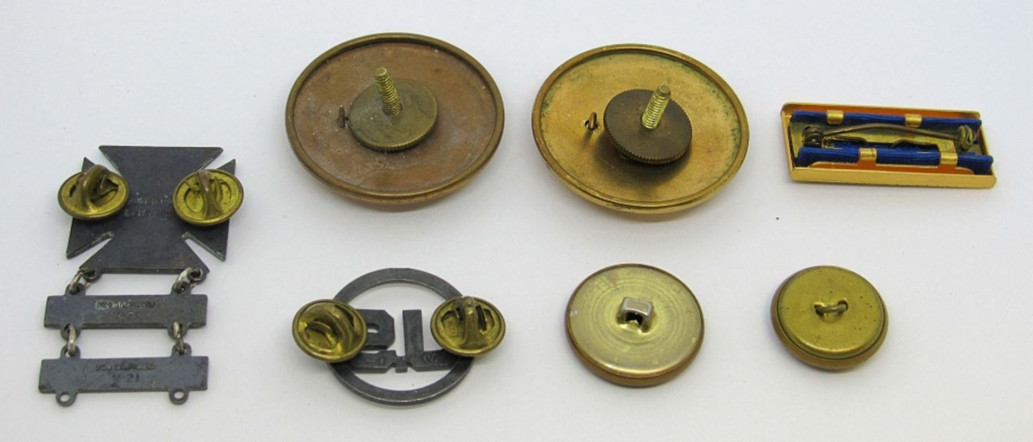 (1) MARKSMAN MEDAL RIFLE / GRENADE SILVER FILLED, (2) GOLD TONE EAGLE HAT CAP BADGE SCREW BACK, (2) U.S. COLLAR BUTTONS, (2) CROSS RIFLE PIN BACK, (1) U.S. PIN BACK, (2) BUTTONS & OAK LEAF AWARD PIN