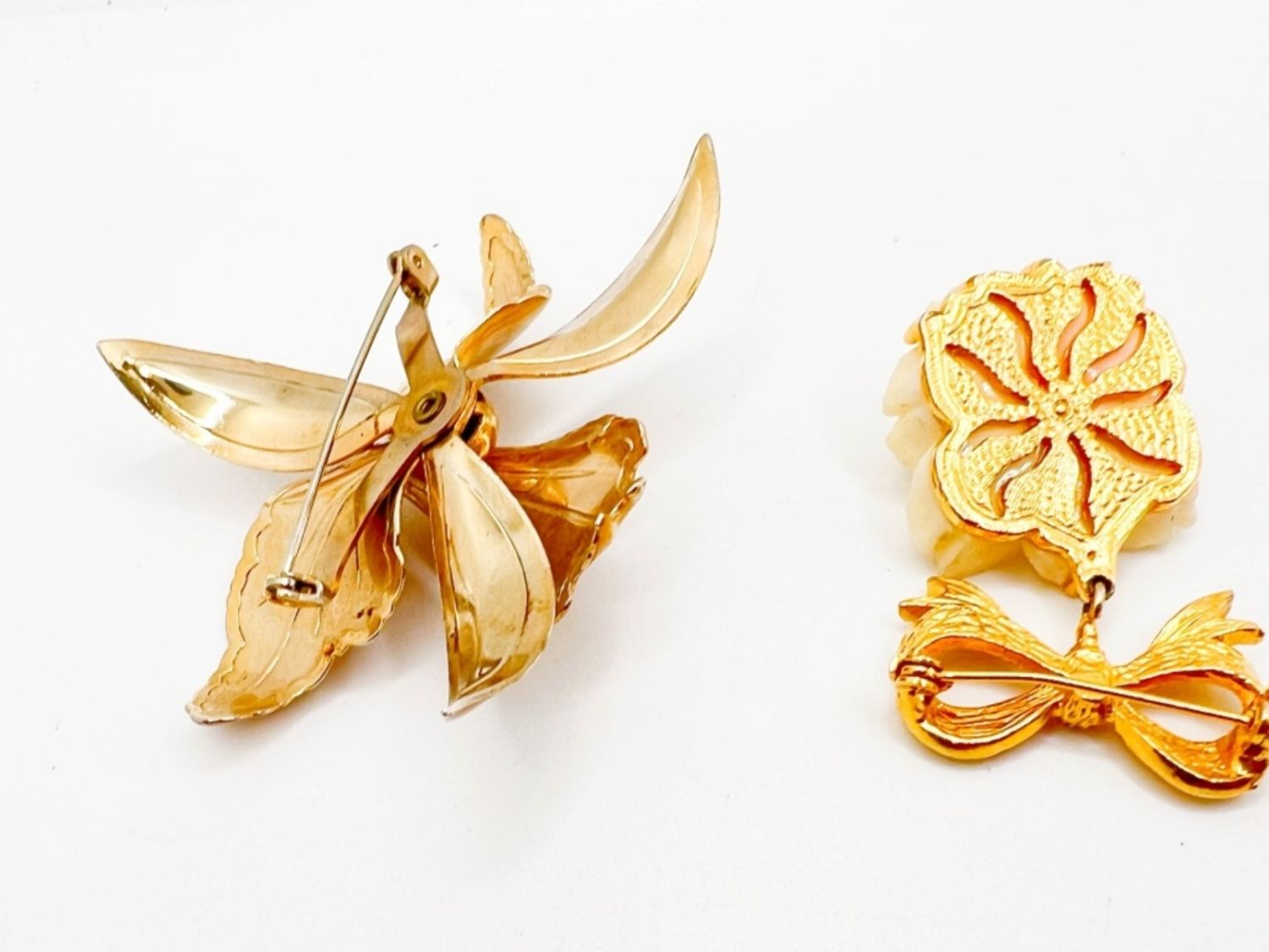 TWO FLORAL BROOCH, ONE WHITE FLOWER