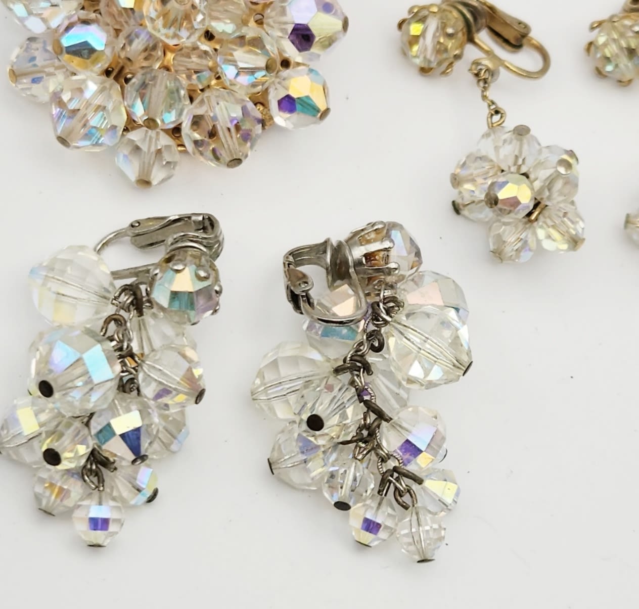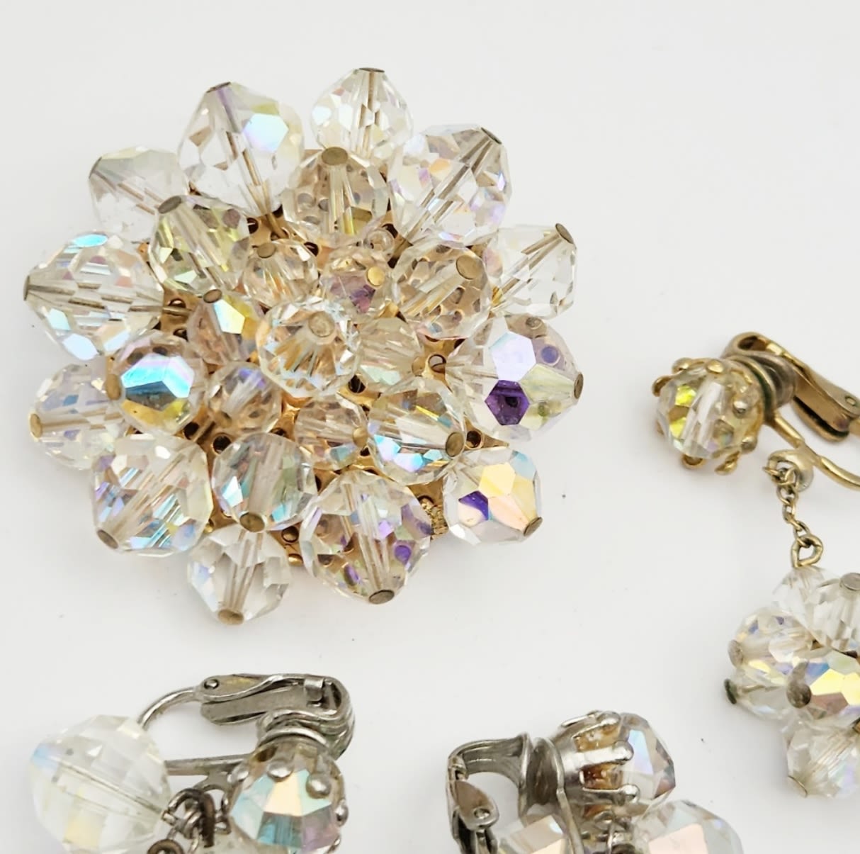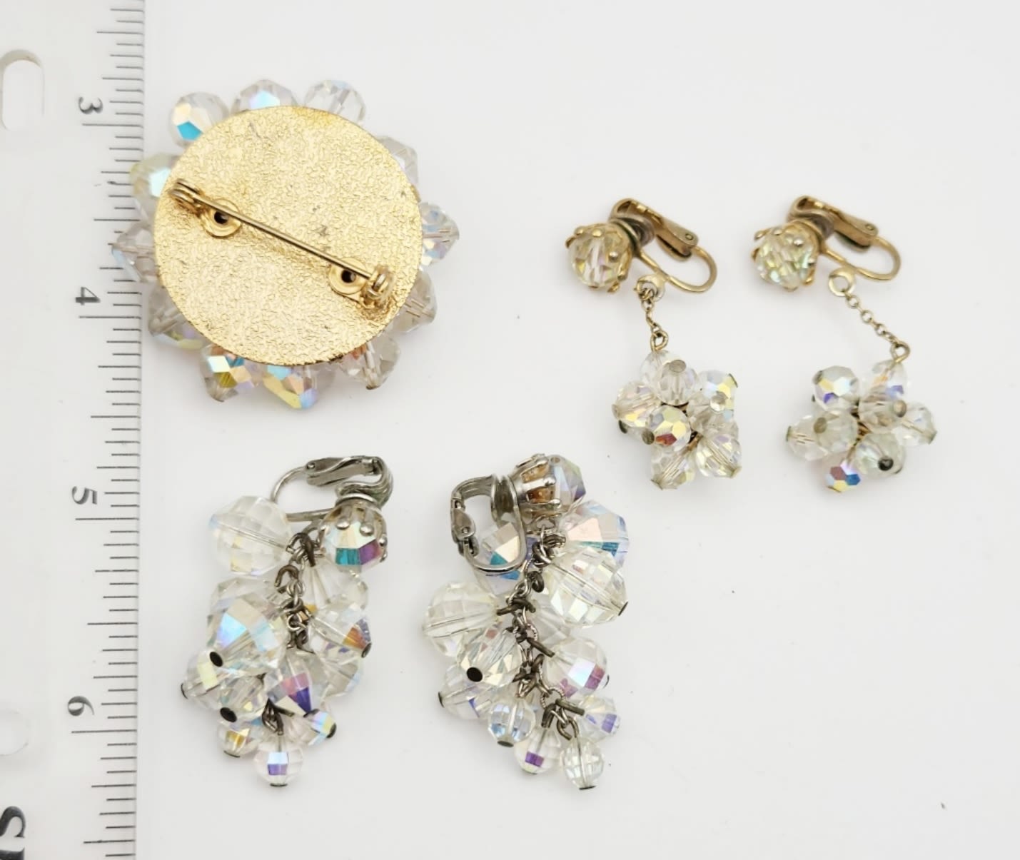 (1)CIRCULAR BROOCH & (2)PAIRS OF CLIP ON DANGLY EARRINGS