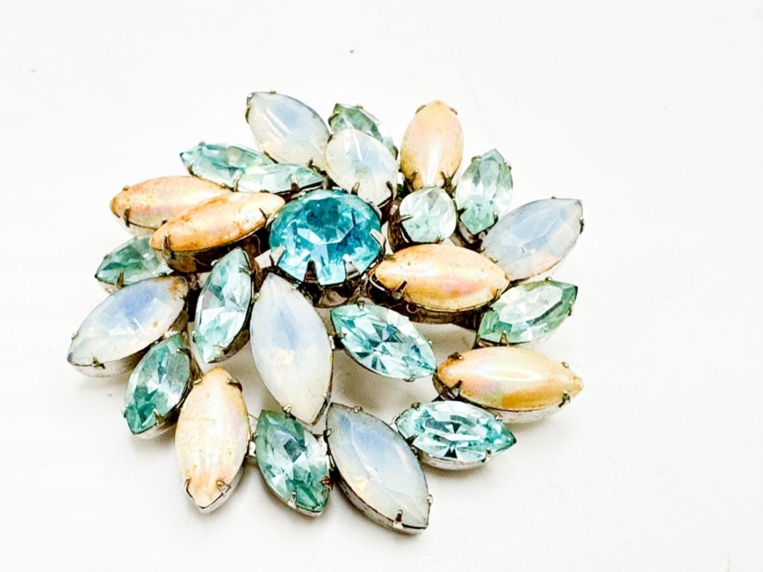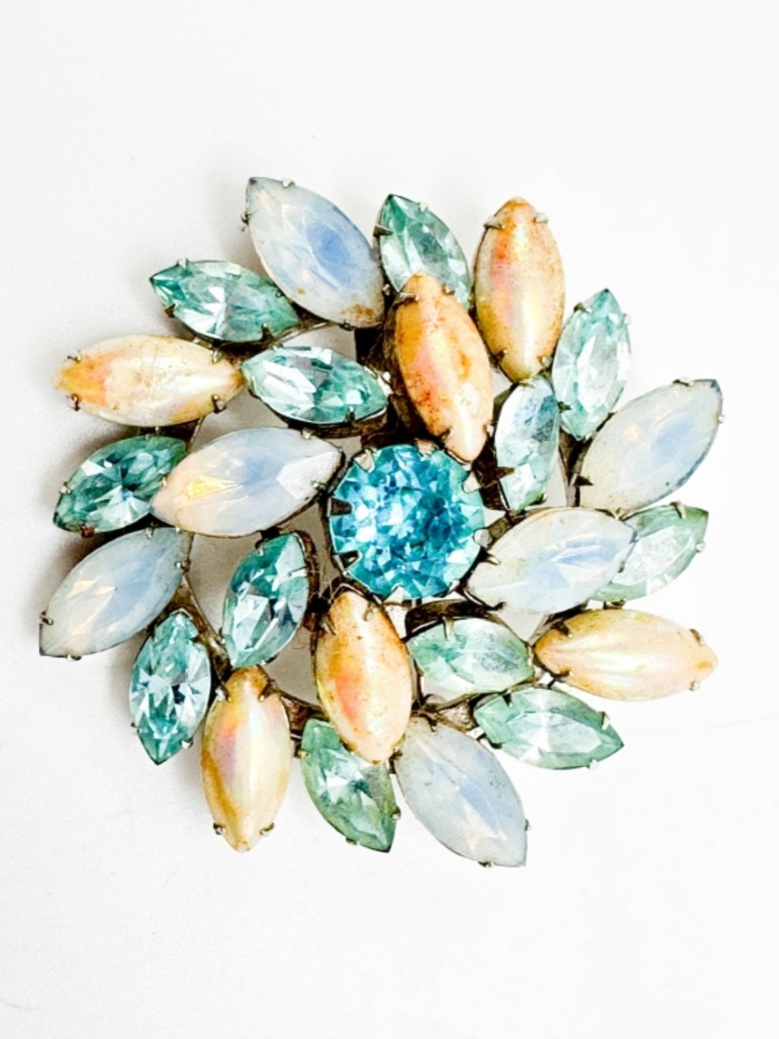 AQUA SWIRL STONE BROOCH , AQUA,SKY BLUE PEARLESCENT AND TANNISH STONES