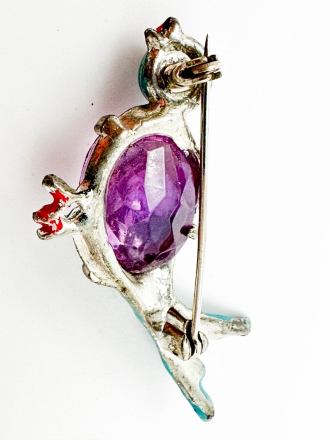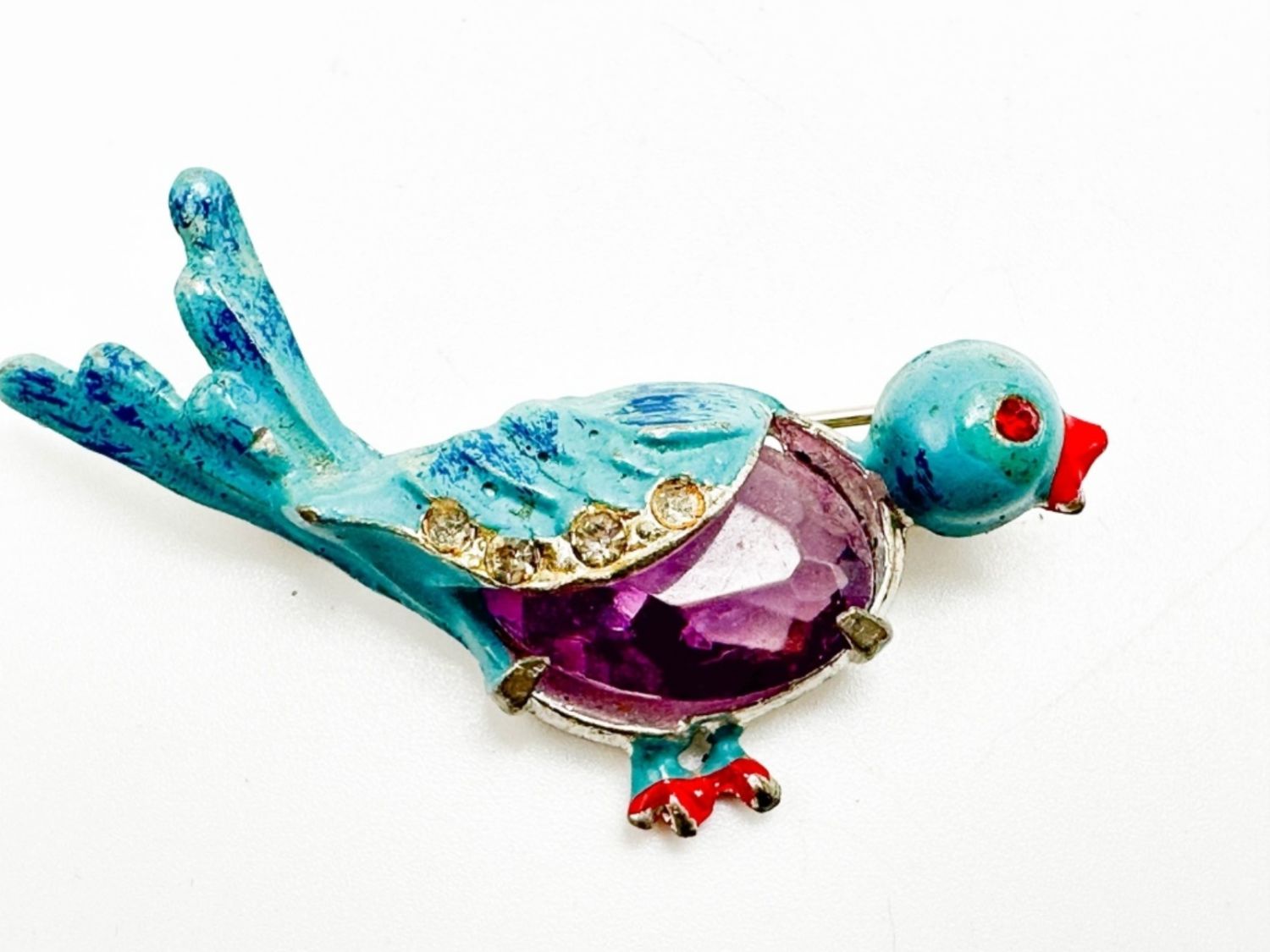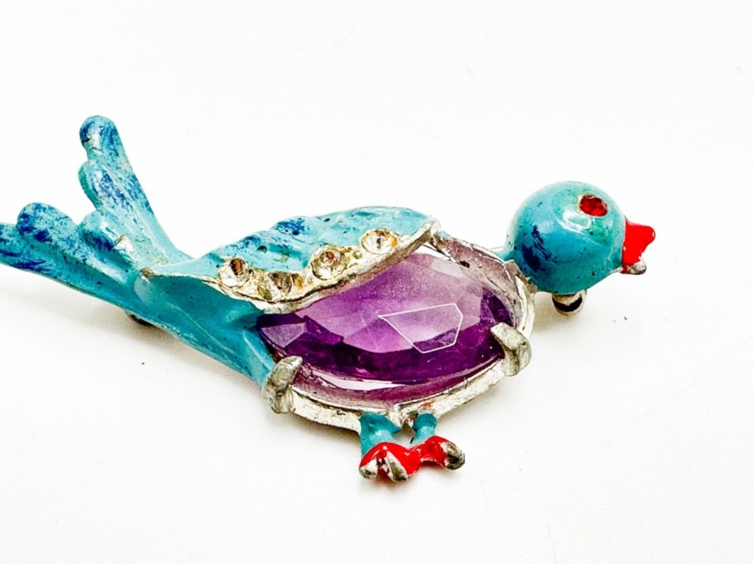 CUTE JELLY BELLY BIRD WITH AMETHSYT COLOR CENTER STONE