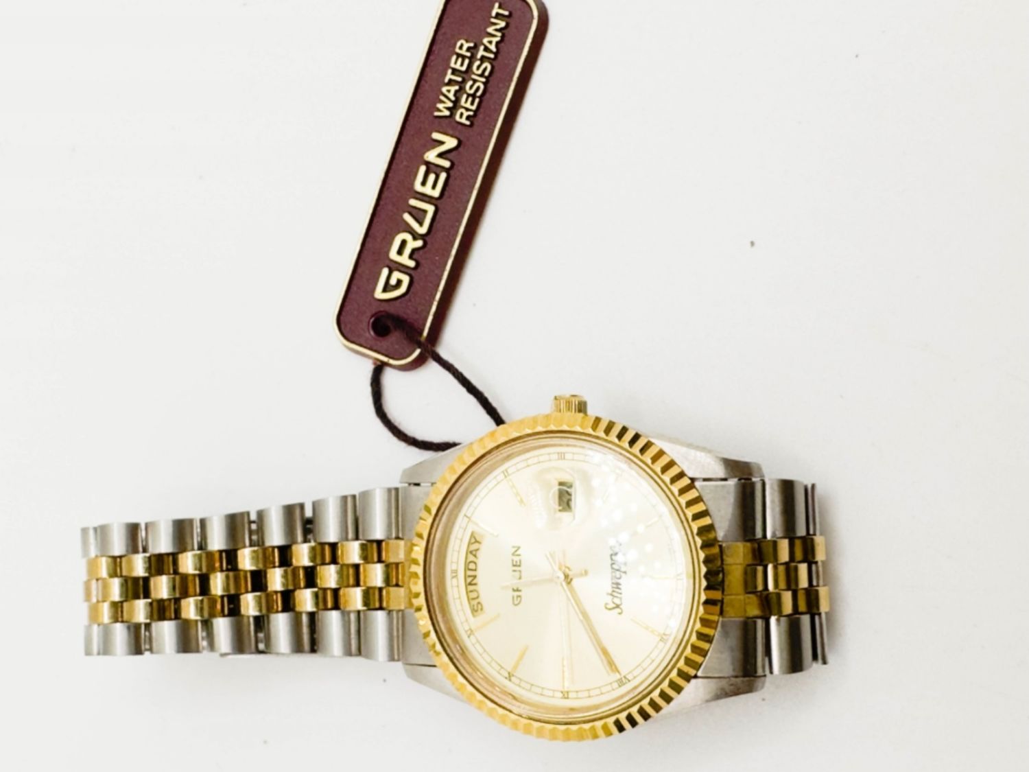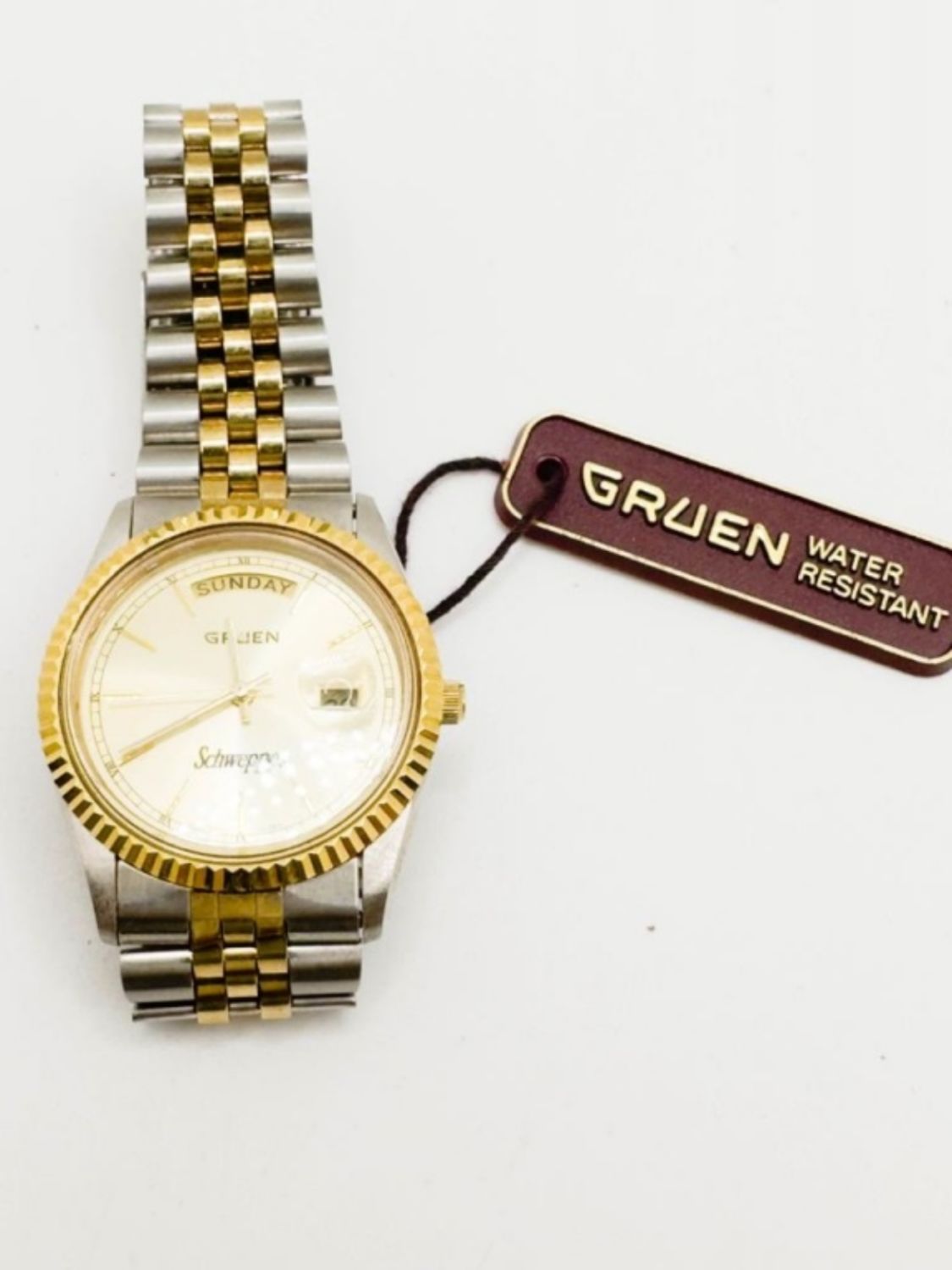 GRUEN SCHWAPPES GENTS WATCH ,VERY NICE, WITH GRUEN TAG, NOT TESTED