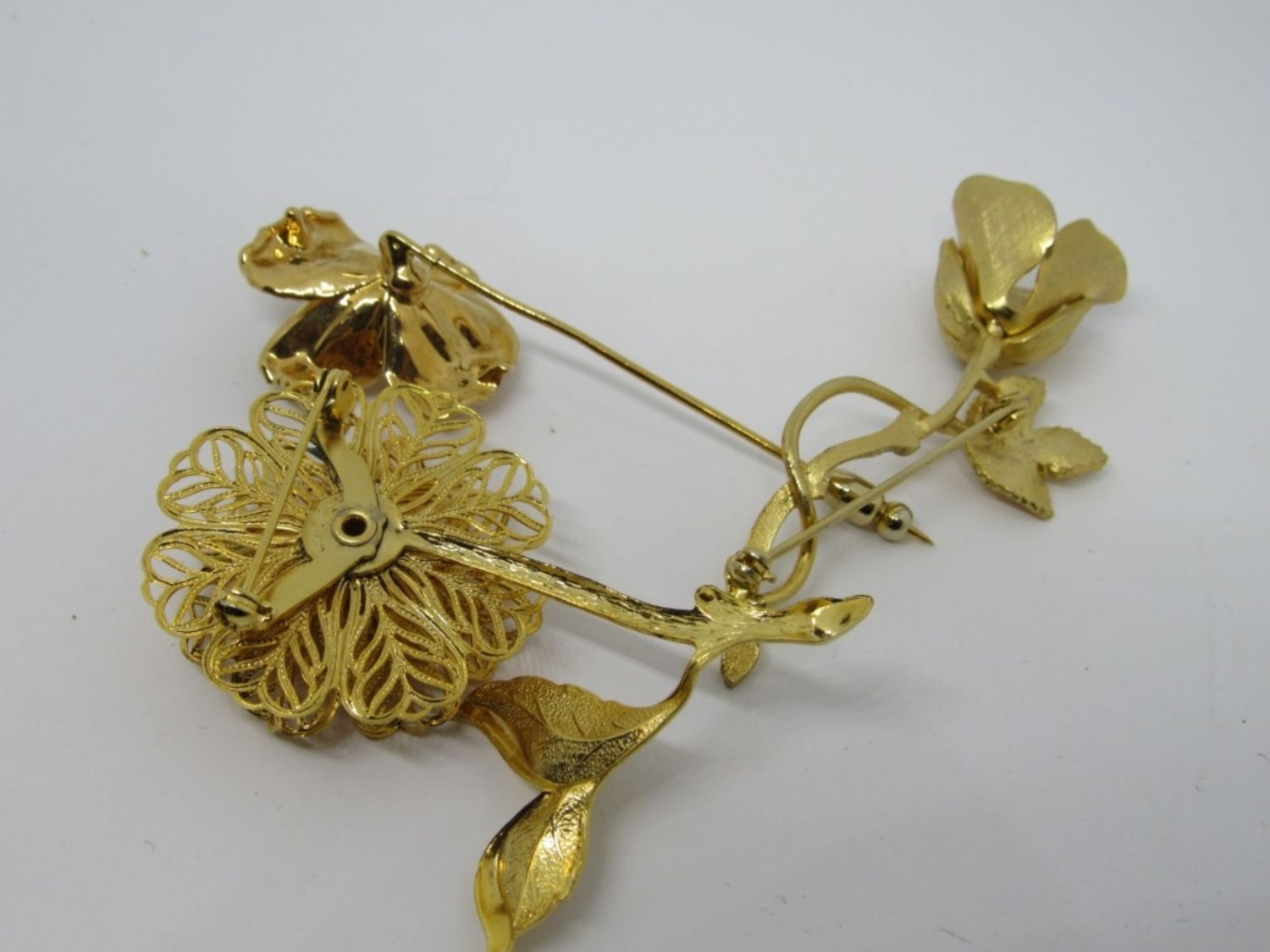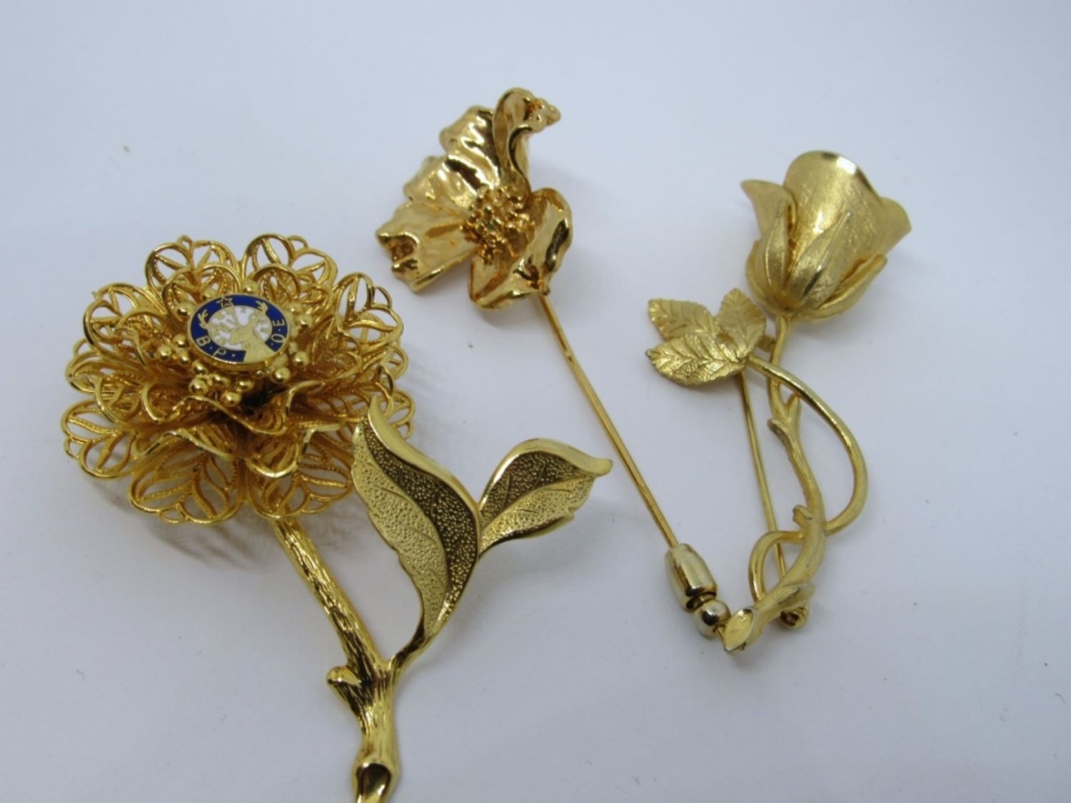 3 FLORAL BROOCHES , GOLD TONE, ALL !
