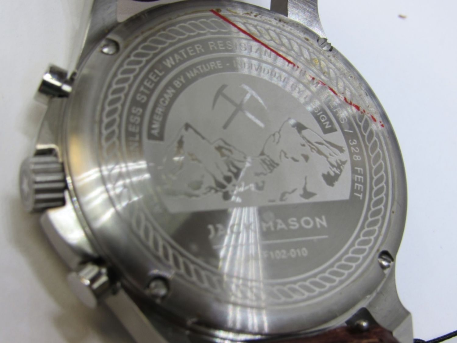 Excellent condition watch, new with tags and original box! Stainless steel 42 mm case and Japanese movement. Band is genuine leather. Face, crystal, and band are in great condition. About 9 in long. Ref # JM-F102-010