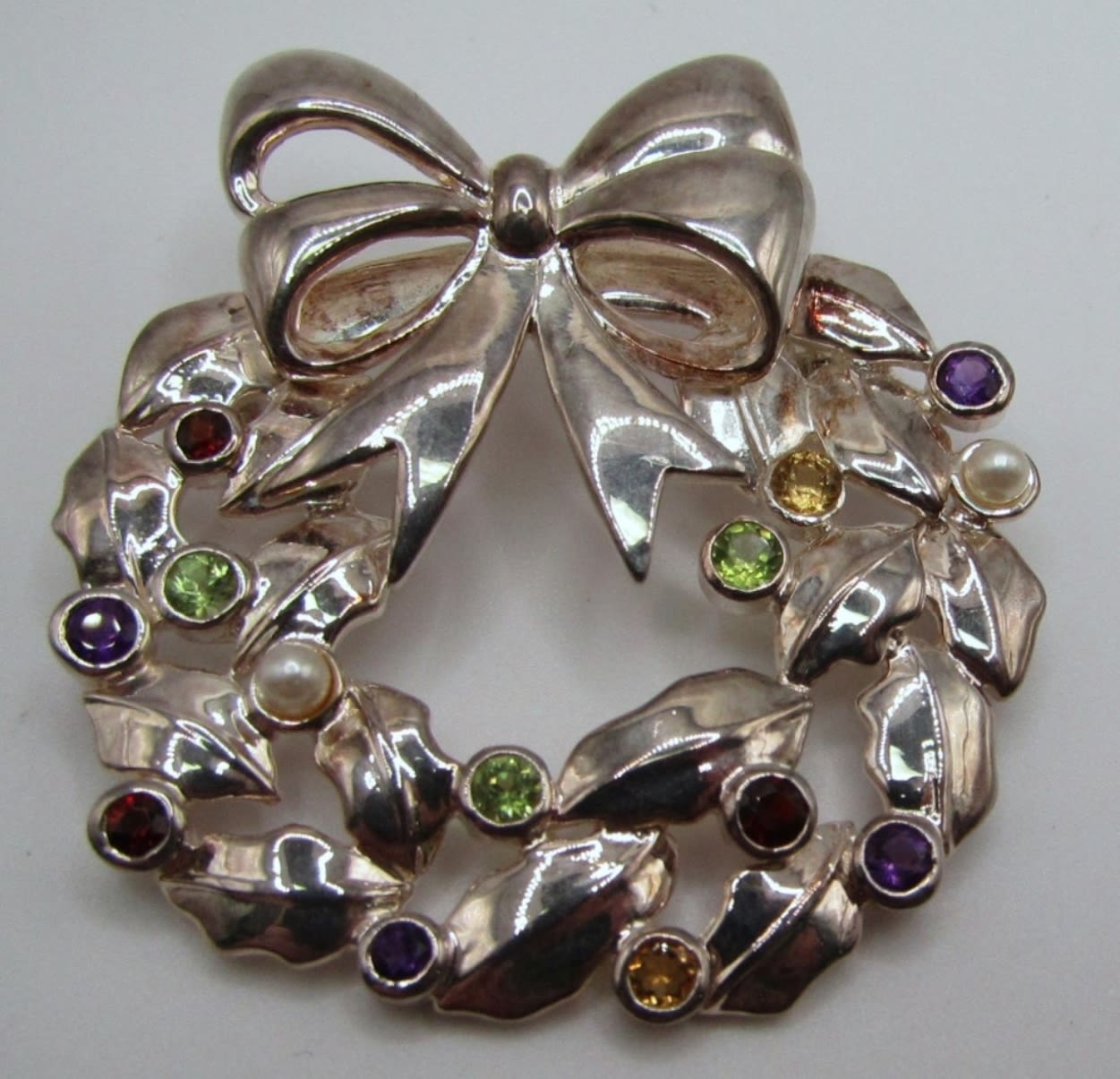 (10 DWT) MISSING ONE GEMSTONE, MISSING PIN NEEDS REPAIR