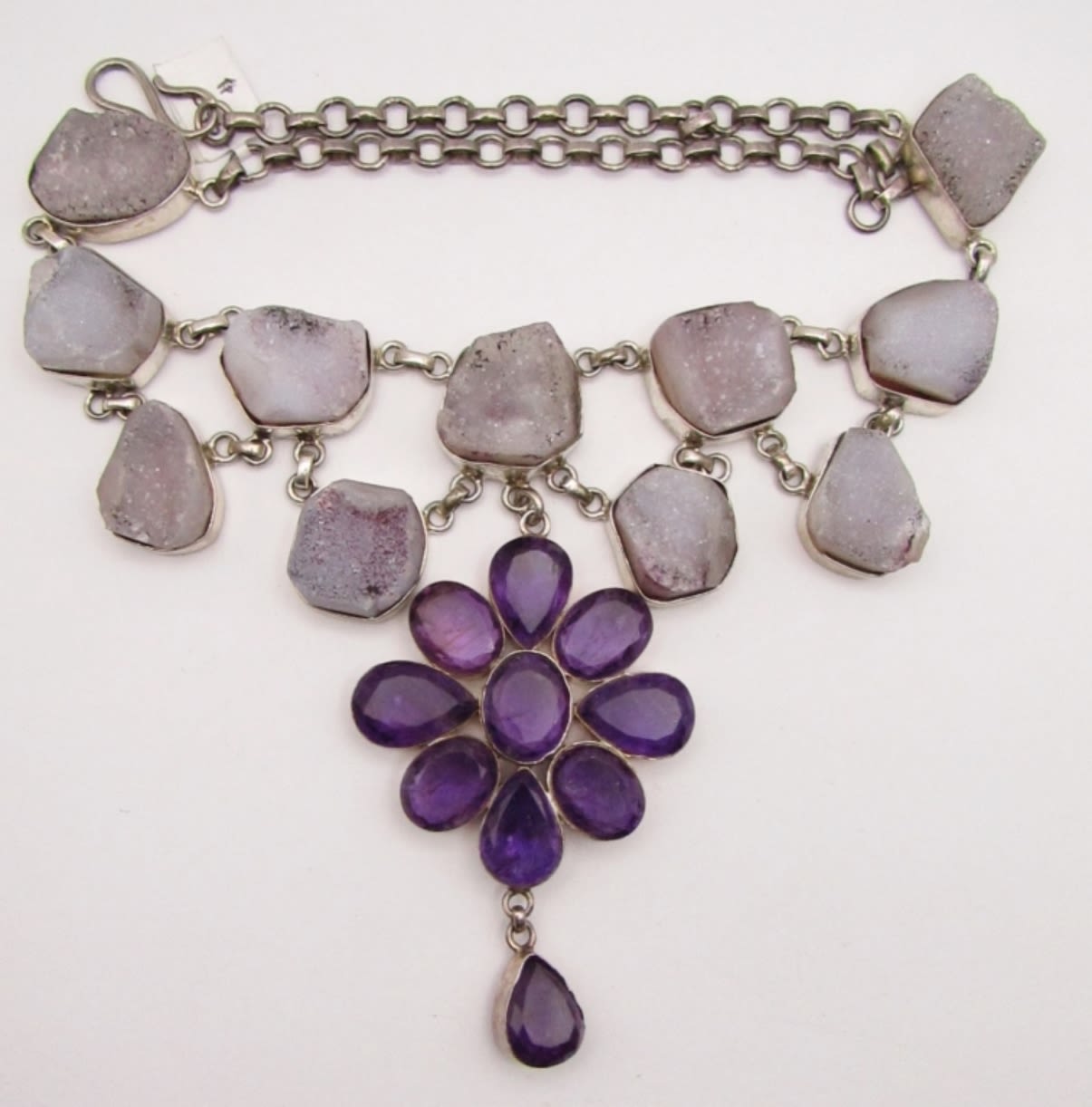 PURPLE SPARKLE STONE & PURPLE AMETHYST – SOLID PIECE – VINTAGE ONE OF A KIND! ( 69 DWT)