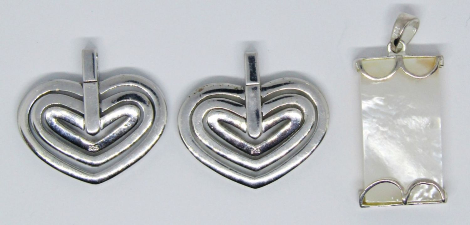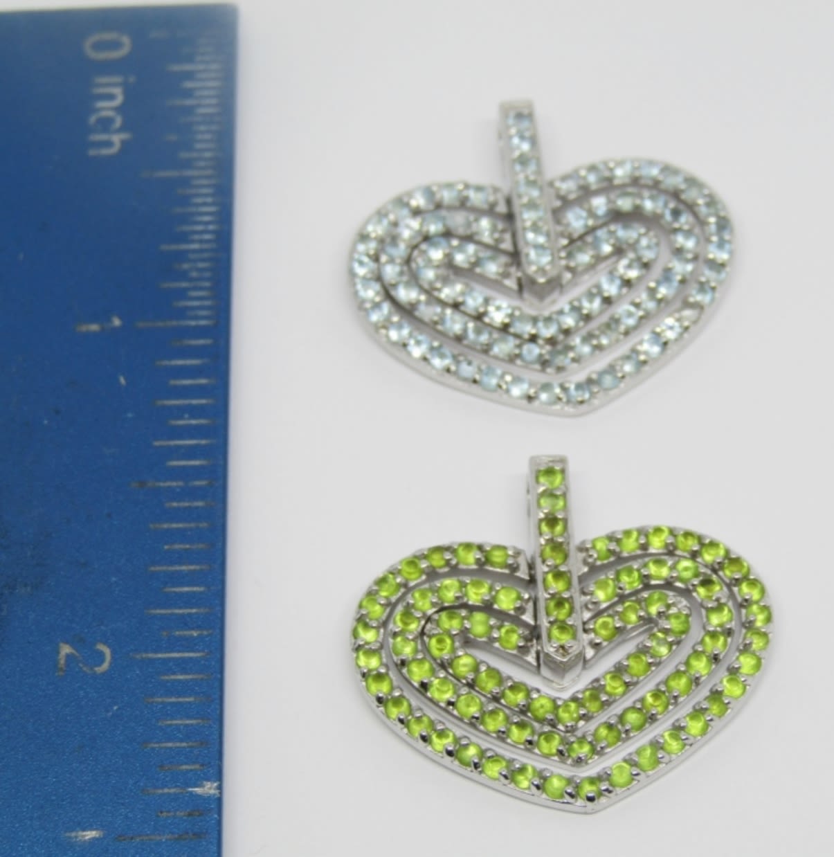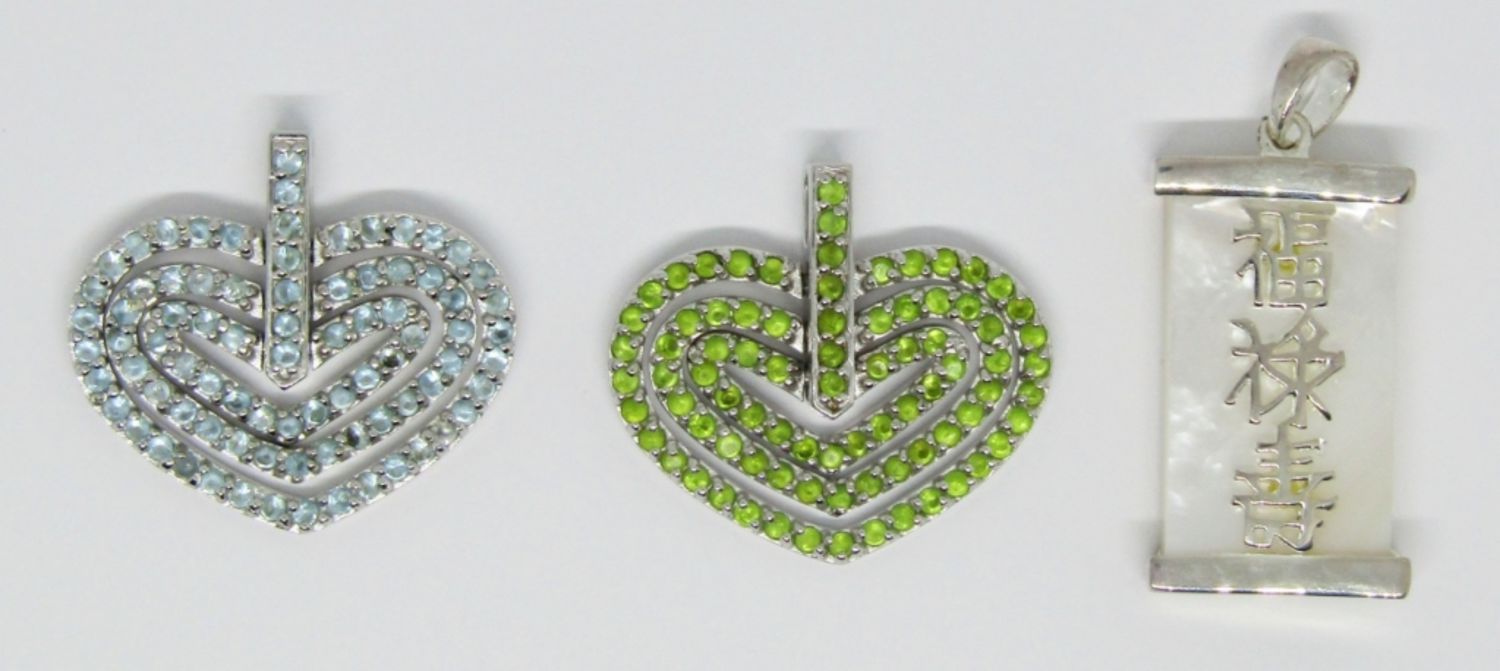 WITH MOTHER OF PEARL ACCENT & (2)HEARTS WITH GREEN AND BABY BLUE STONES-TOTAL 11 DWT