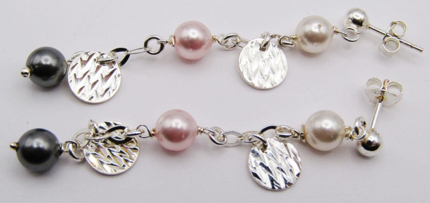 PRETTY DANGLE STYLE with PINK/GRAY/WHITE BEADS – 3 dwt each