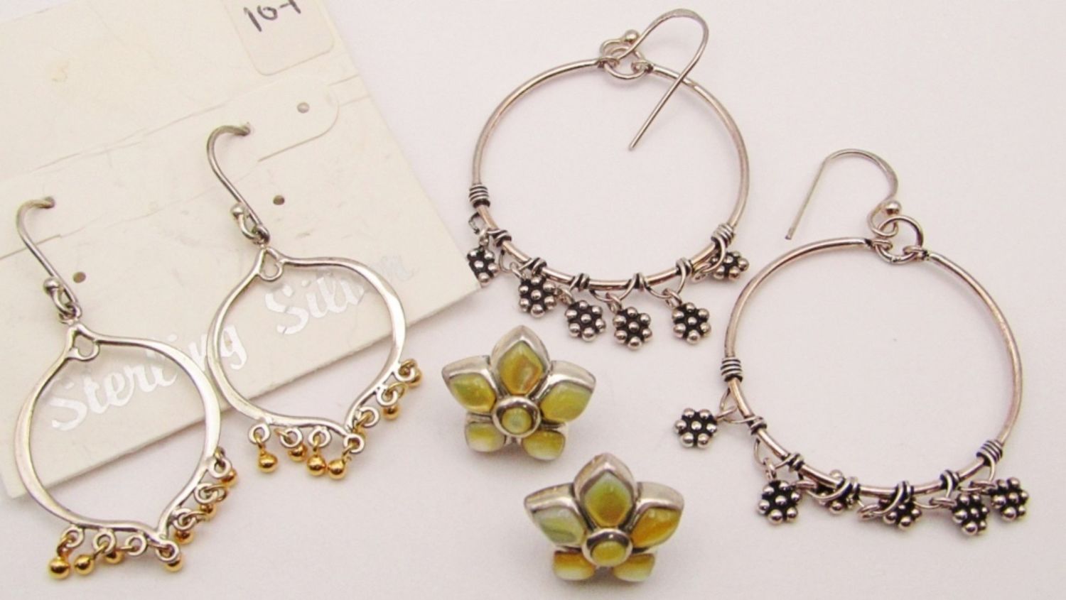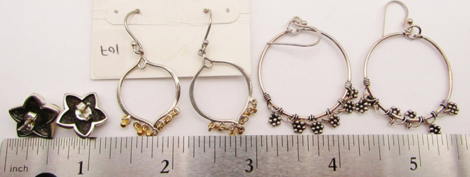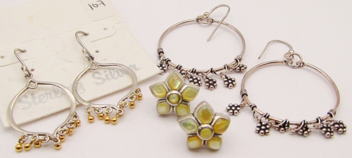 (2)DANGLY HOOPS & (1)FLOWER STUD-TOTAL 10 DWT