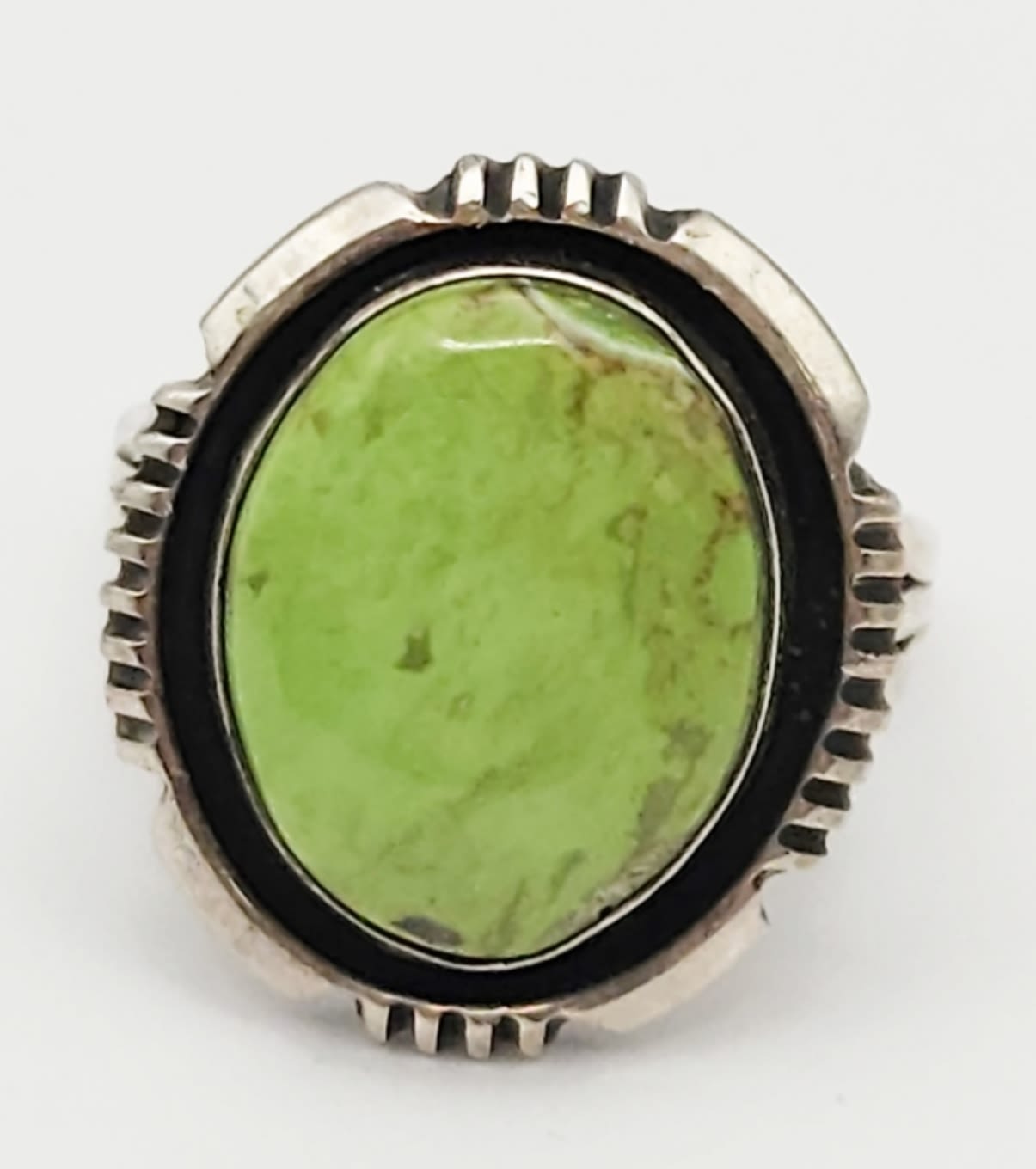 GREEN TURQUOISE CENTER STONE-RING SIZE 9.5-TOTAL 4 DWT