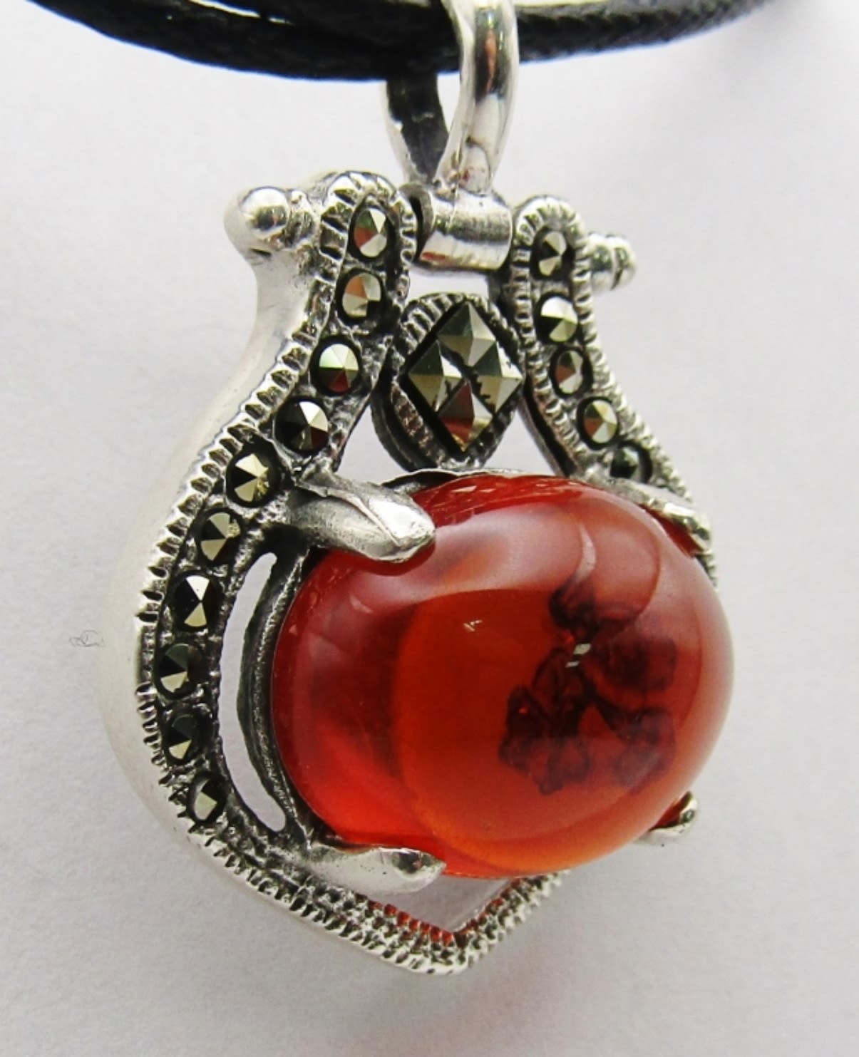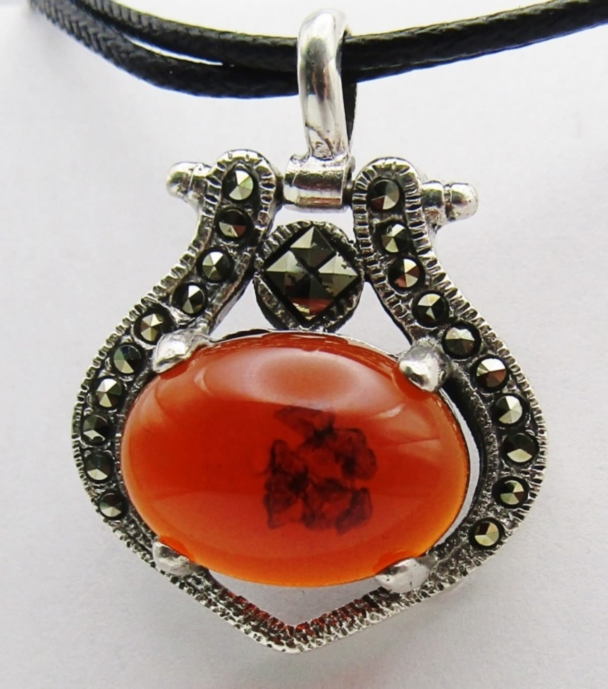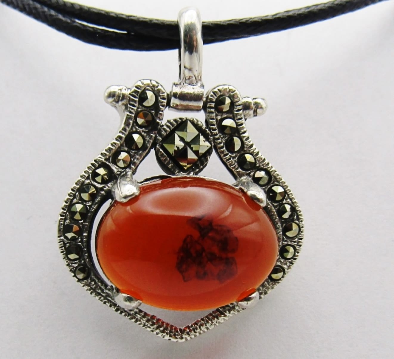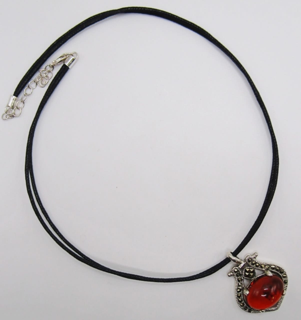CENTER STONE PLUS BONUS LEATHER NECKLACE/CHAIN WITH 925 CLASP