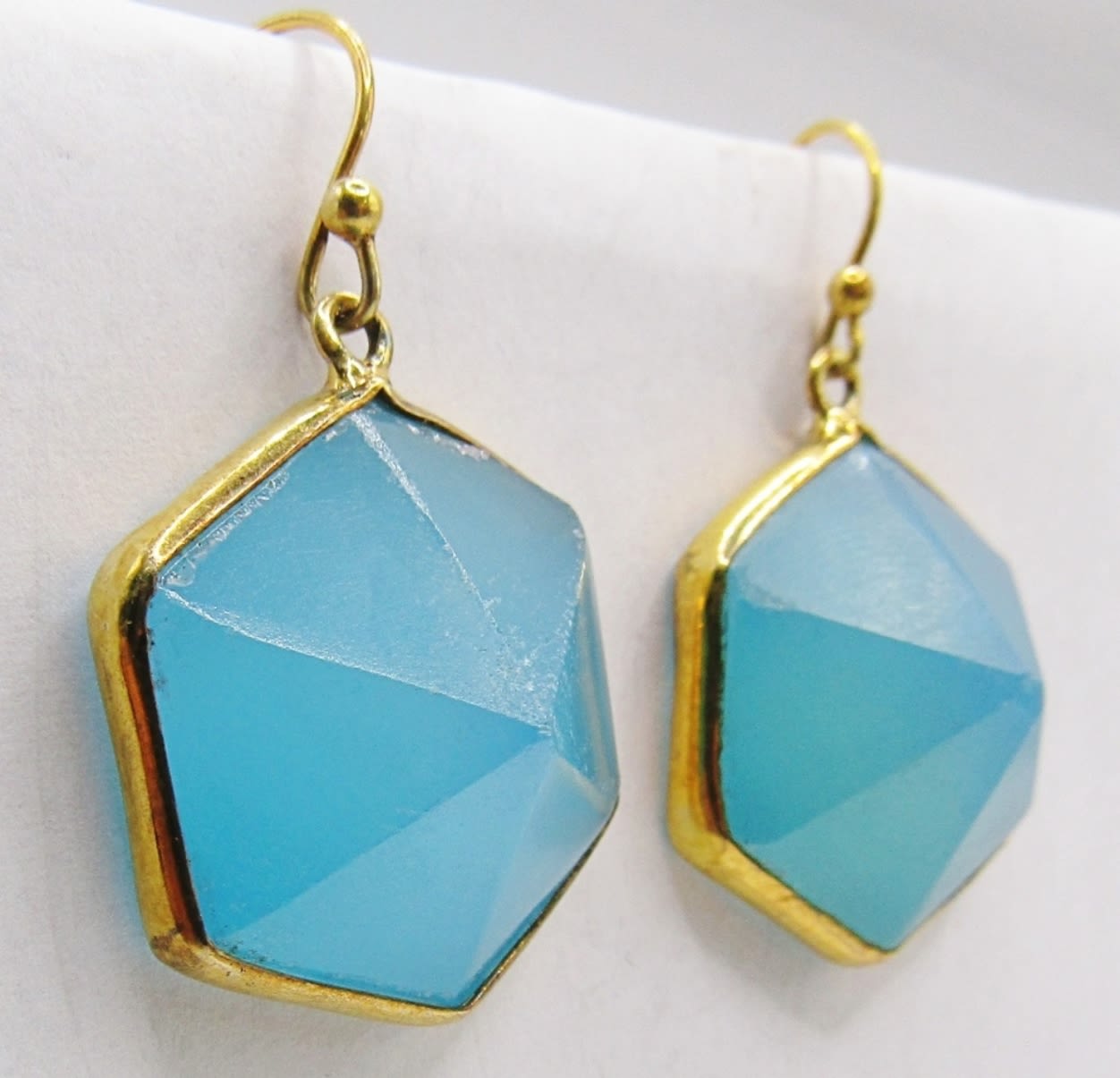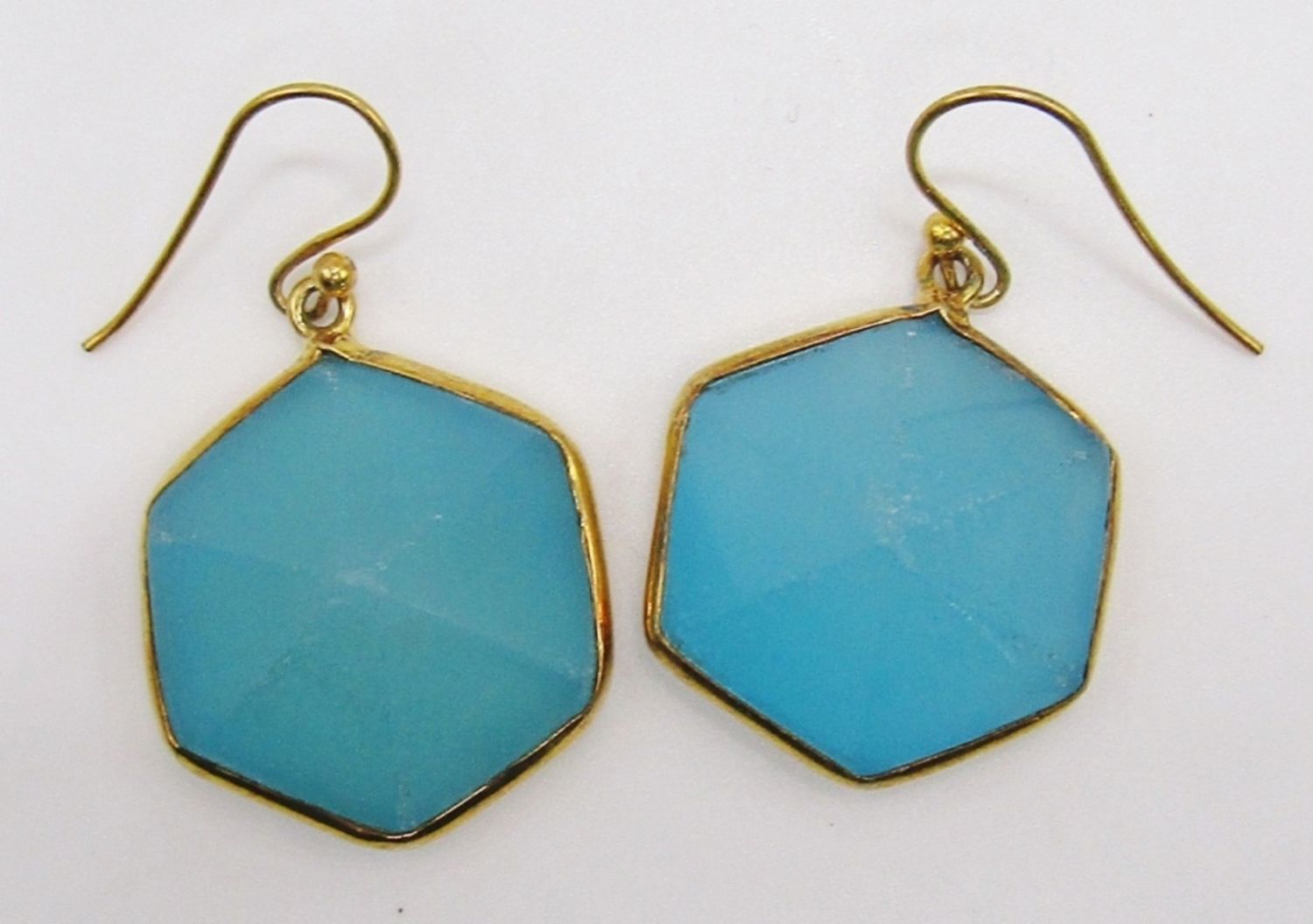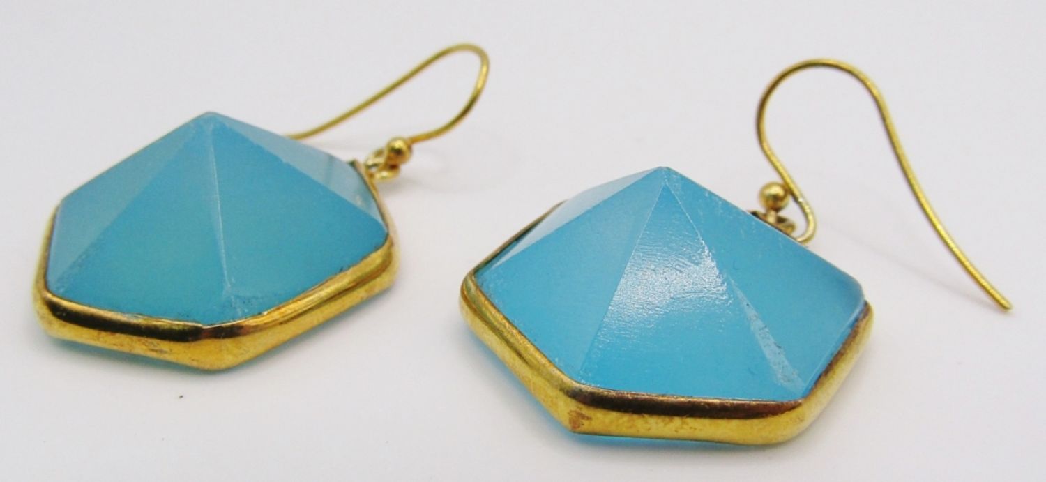 EARRINGS WITH 3-D GEOMETRIC TEAL CENTER