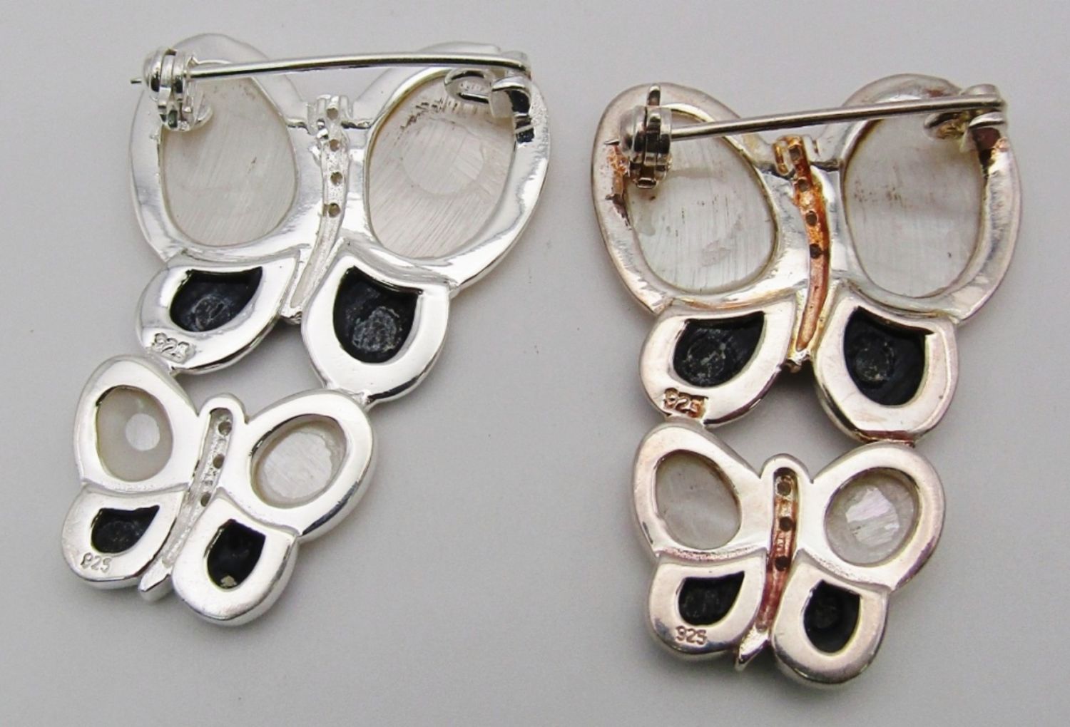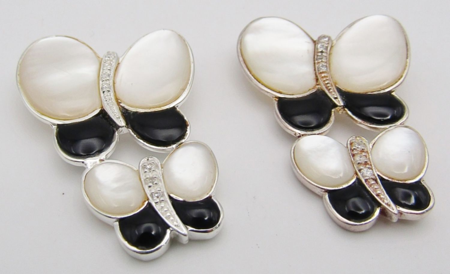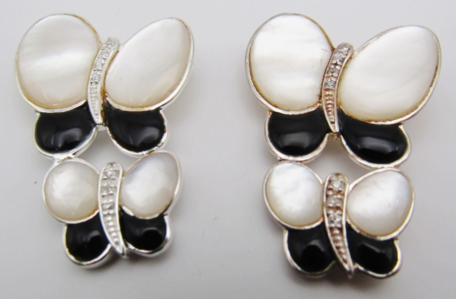 Mother of pearl and black onyx stones with clear stones in the middle, 10dwt