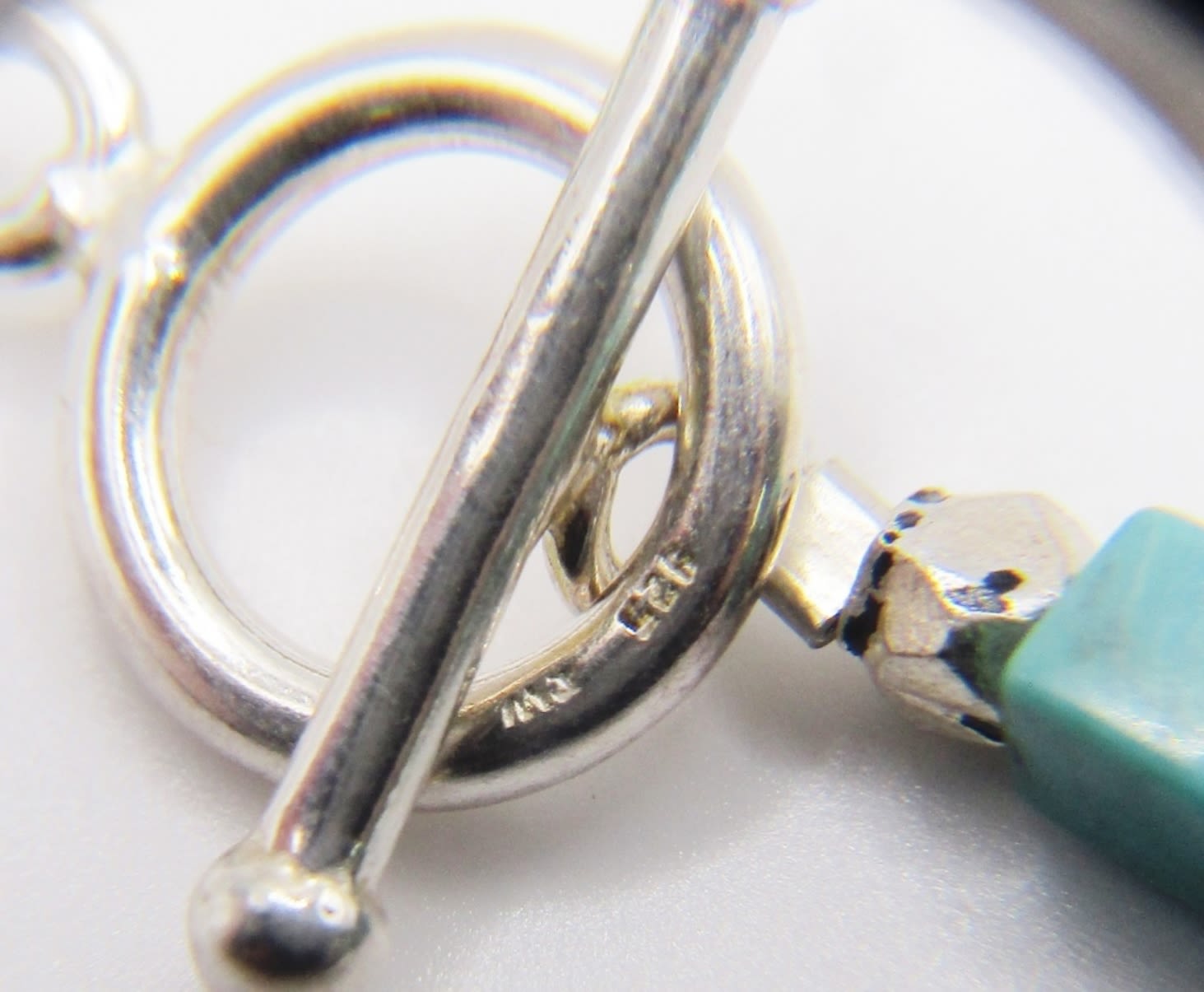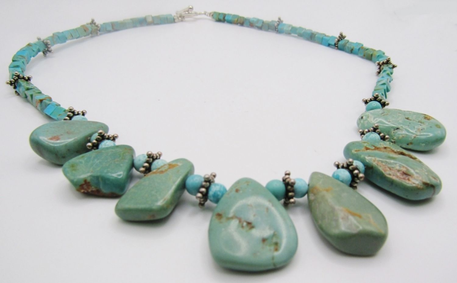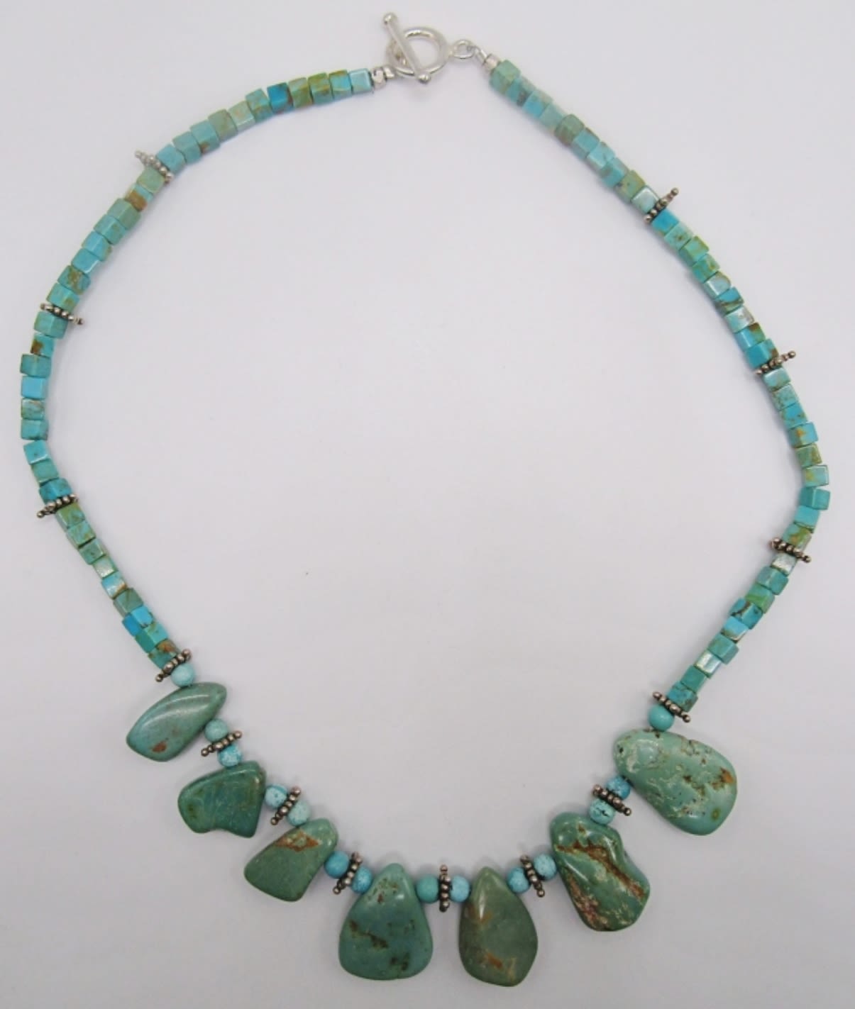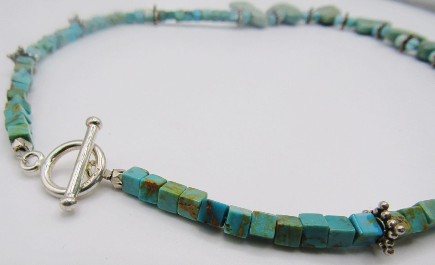Turquoise cube,round with sterling beading design, 18 in, 24DWT