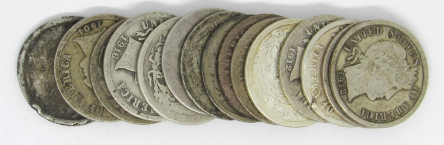 BARBER DIME LOT of 15 COINS