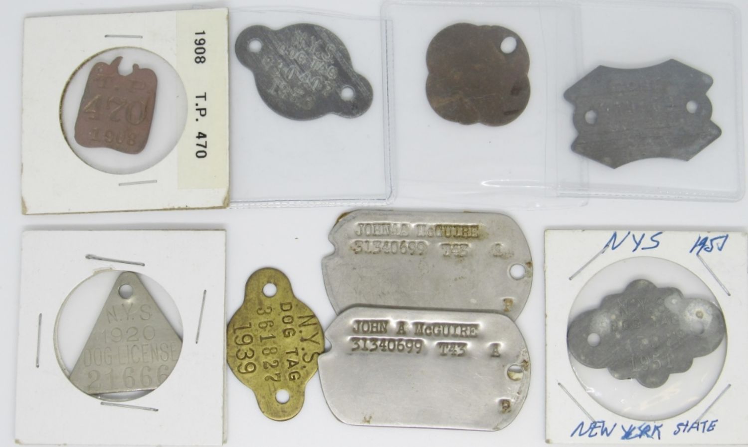 1908 – 1956 DOG LICENSE TAGS (1) SET MILITARY DOG TAGS VINTAGE