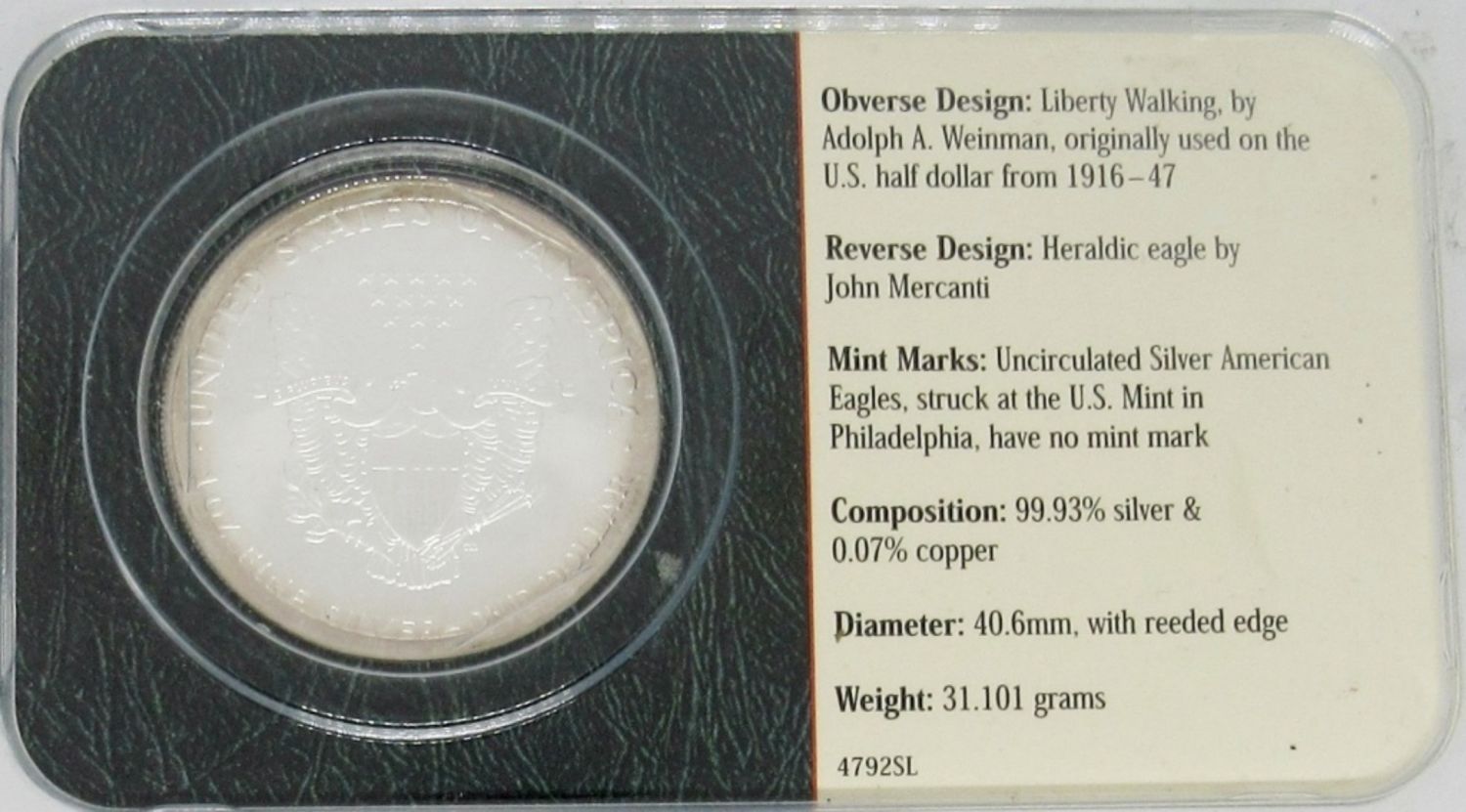 AMERICAN SILVER EAGLE 1ozt .999 PURE SILVER